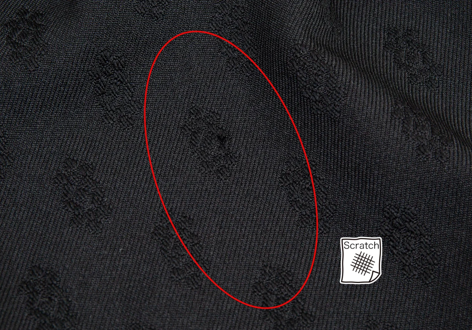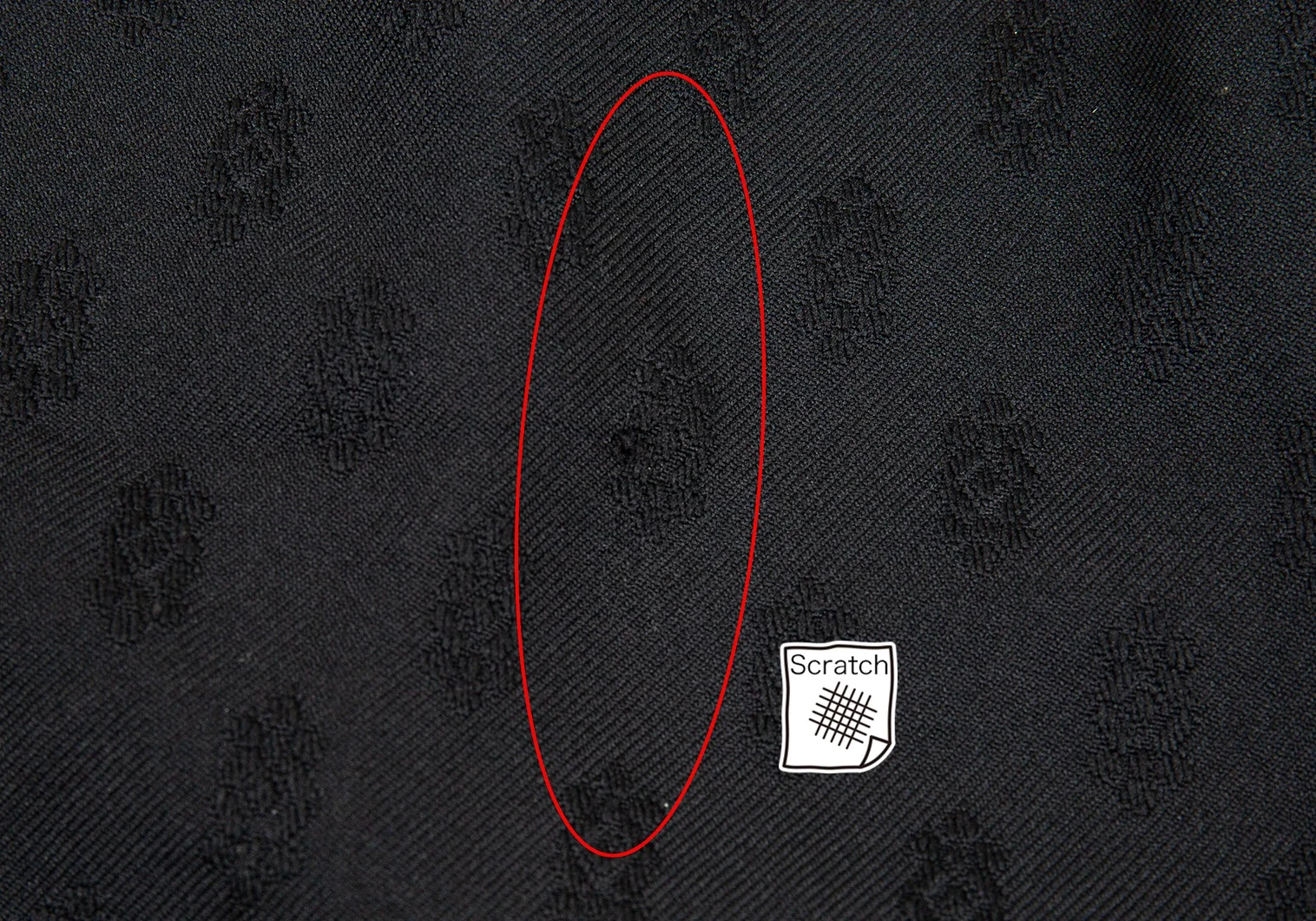 ゴムウエストですが、紐で調整ができます。前身頃に引っ掛けと毛羽立ちがあります(画像参照)。その他目立ったシミ、汚れ、ほつれ等なくいい状態です。クリーニング済み