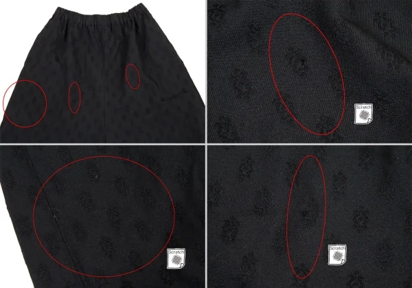 パンツ:ゴムウエストですが、紐で調整ができます。前身頃に引っ掛けと毛羽立ちがあります(画像参照)。その他目立ったシミ、汚れ、ほつれ等なくいい状態です。クリーニング済み
