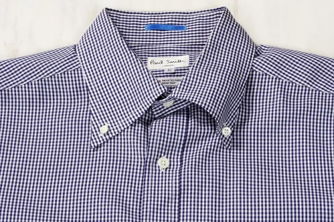 ポールスミス ロンドンPaul Smith LONDON ギンガムチェック長袖ボタンダウンシャツ 青白XL