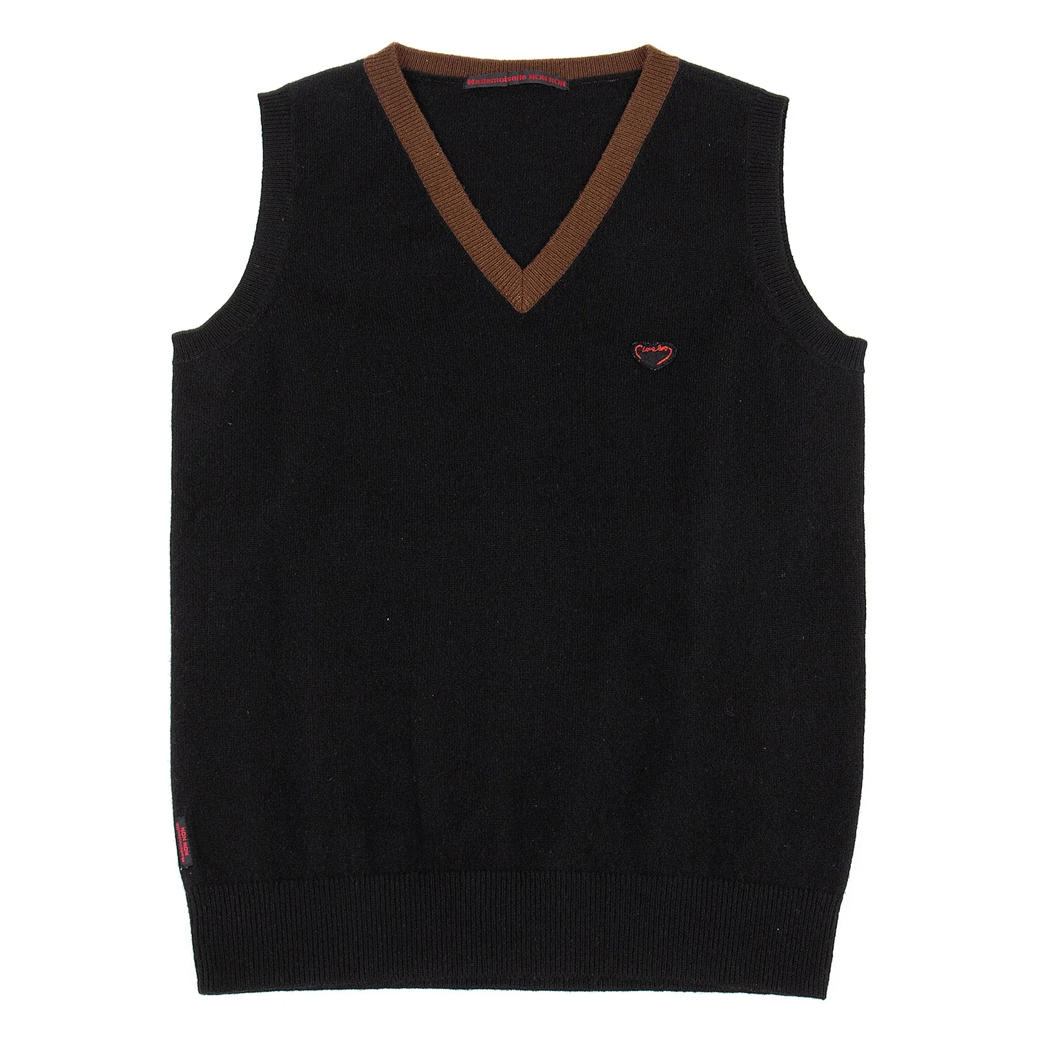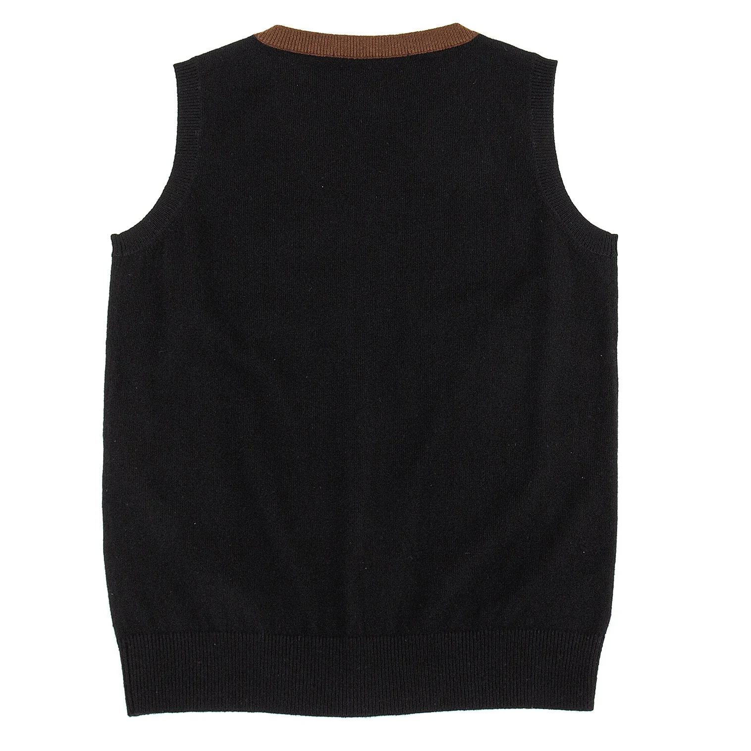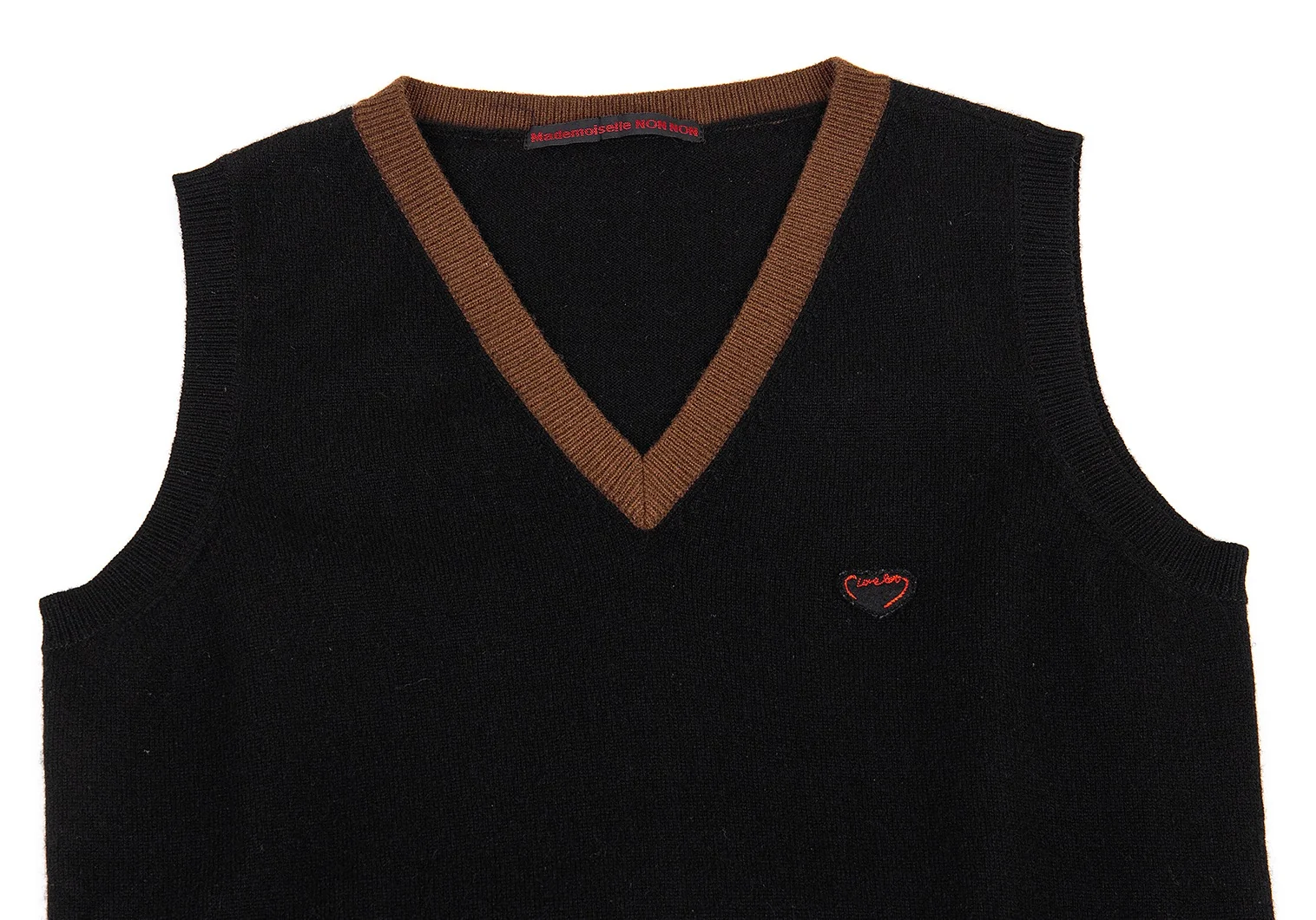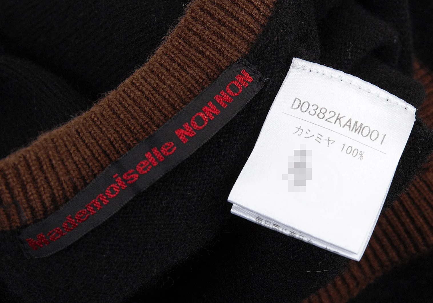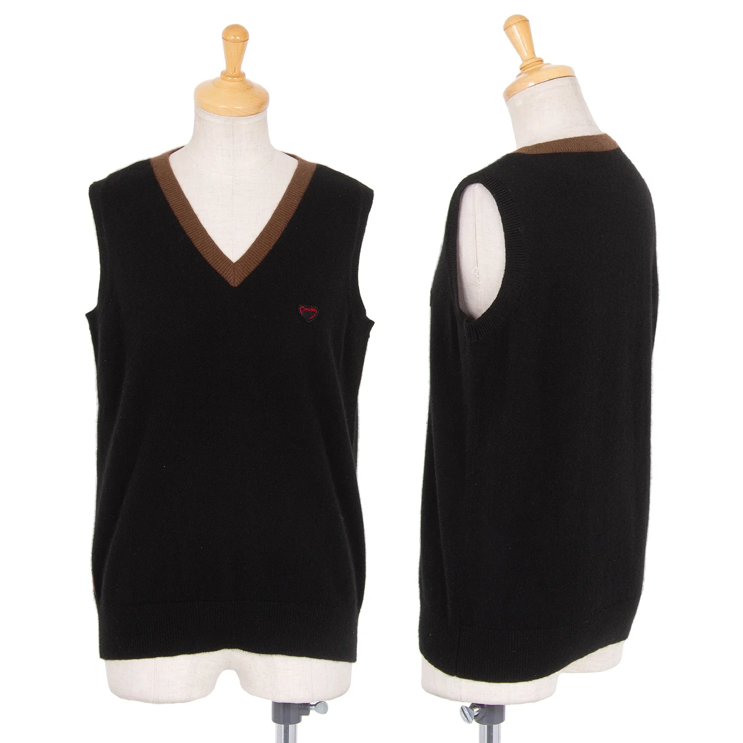 マドモアゼルノンノンMademoiselle NON NON バイカラーカシミヤベスト 黒茶M位