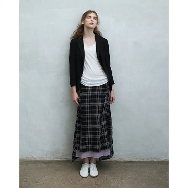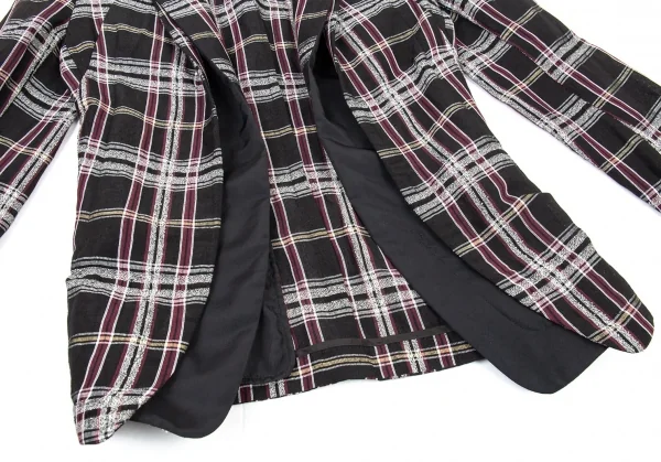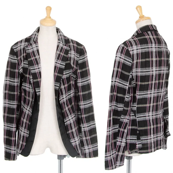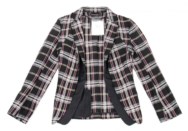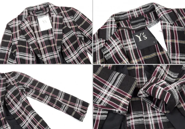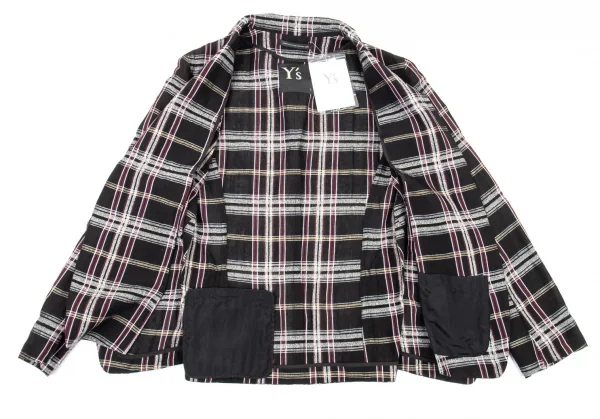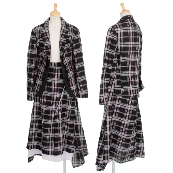 新品!ワイズY's フロントレイヤードチェックジャケットセットアップスーツ 黒マルチ2