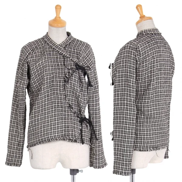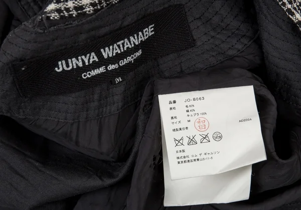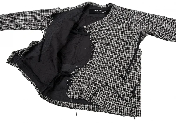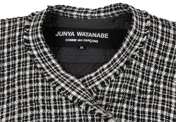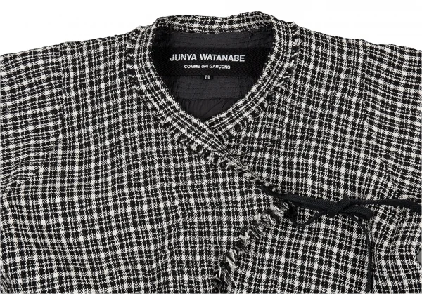 ジュンヤワタナベ コムデギャルソンJUNYA WATANABE COMME des GARCONSツィード裁ち切りループ縛りウールシルクジャケット 白黒M