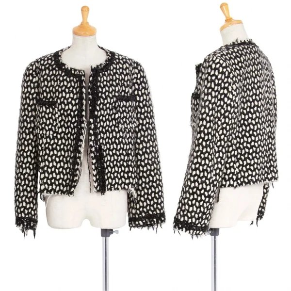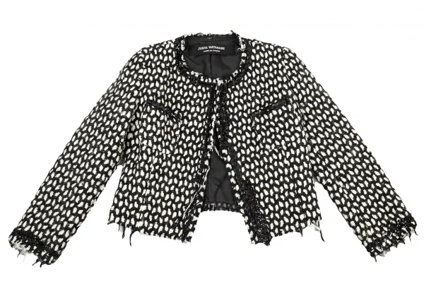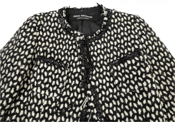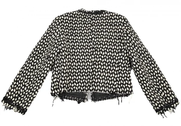 ジュンヤワタナベ コムデギャルソンJUNYA WATANABE COMME des GARCONS スパンコール装飾ネット編みウールニットジャケット 白黒M位