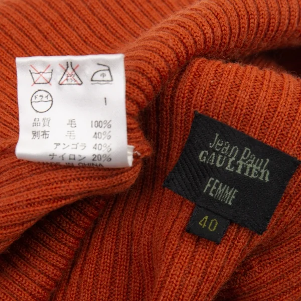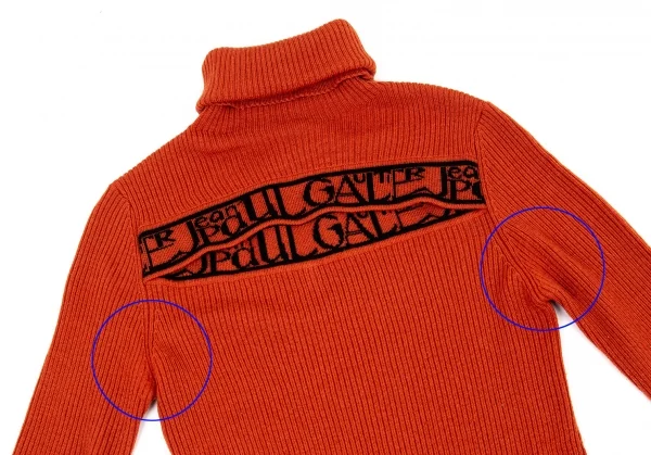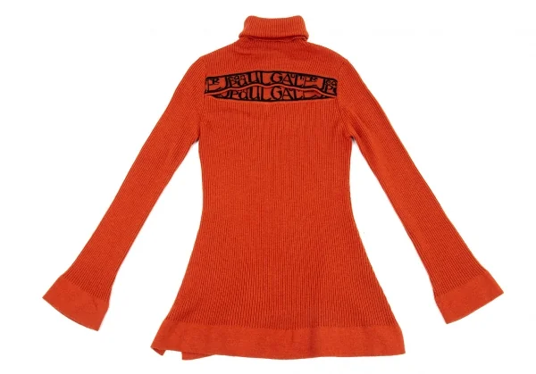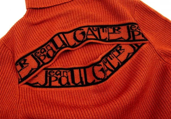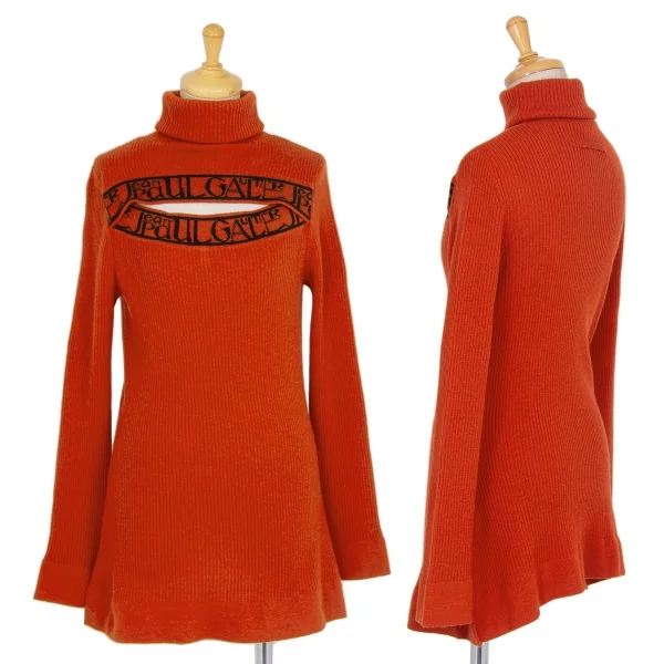 ジャンポールゴルチエ ファムJean Paul GAULTIER FEMME バストロゴスリットタートルネックリブニット オレンジ40