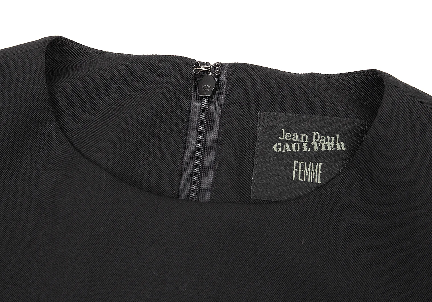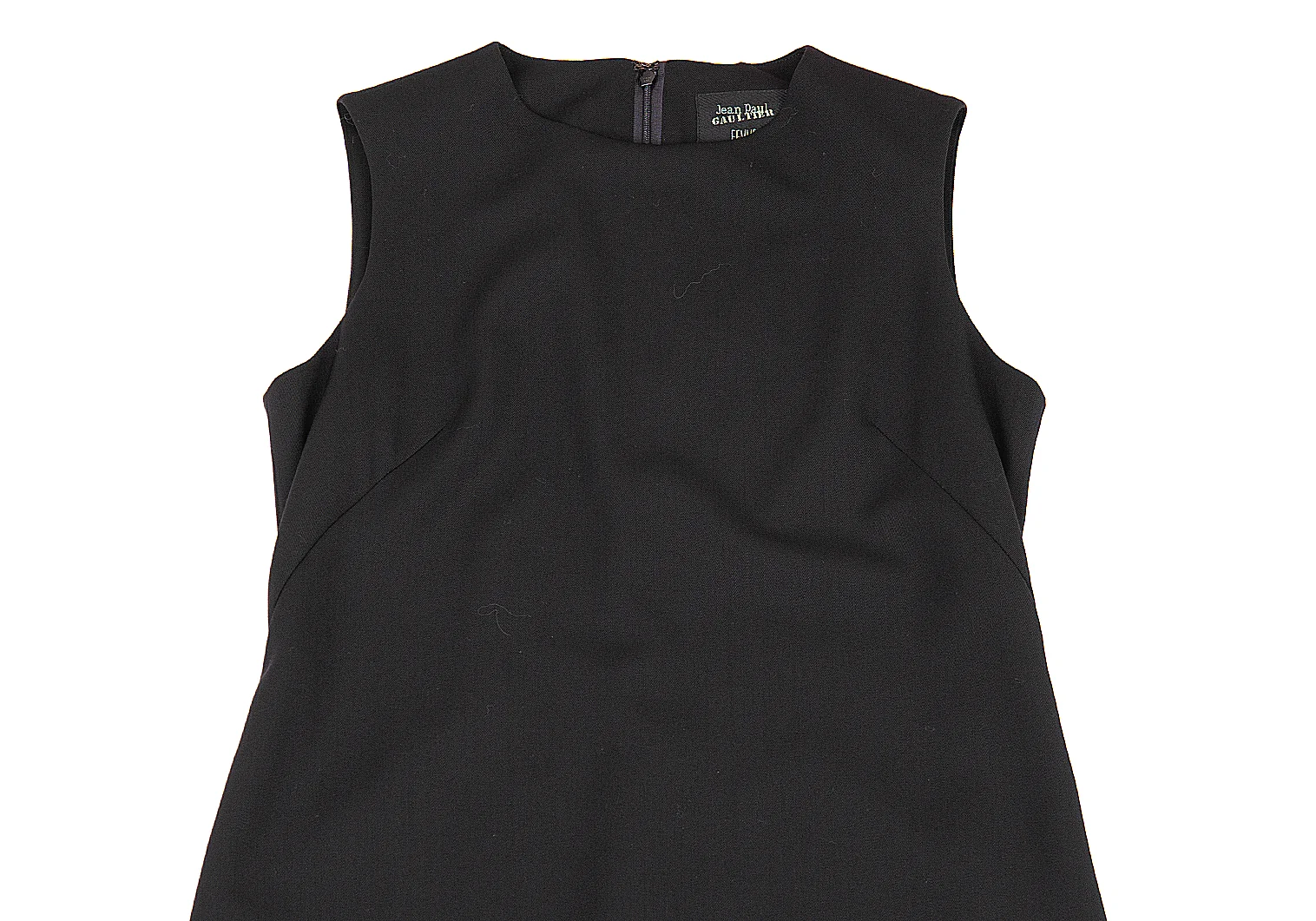 ジャンポールゴルチエ ファムJean Paul GAULTIER FEMME バックプリーツウールギャバノースリーブワンピース 黒40