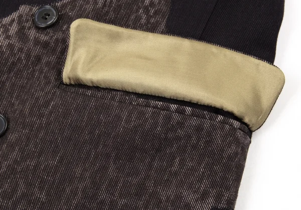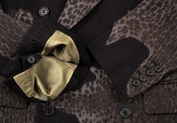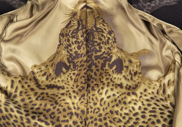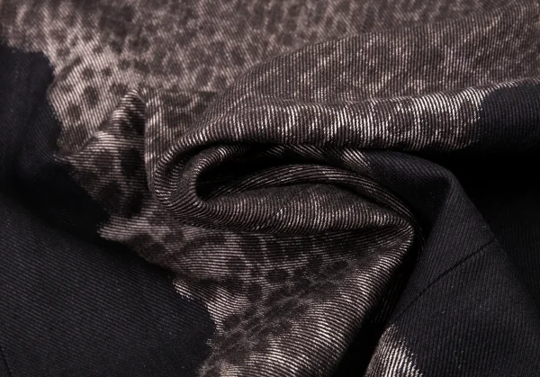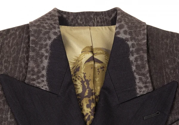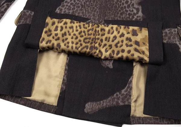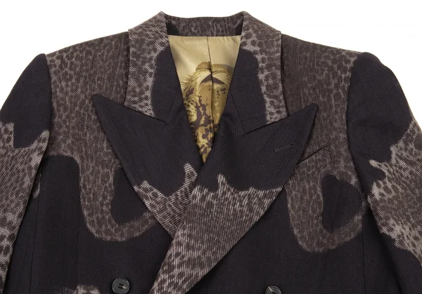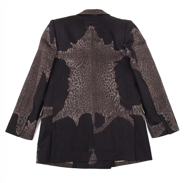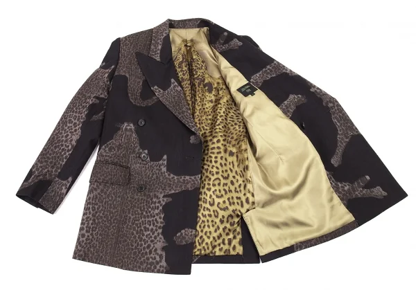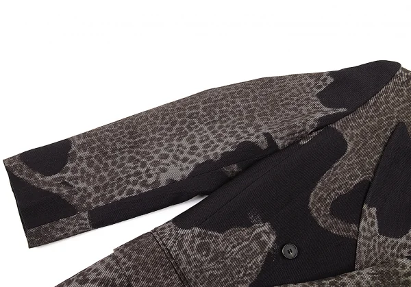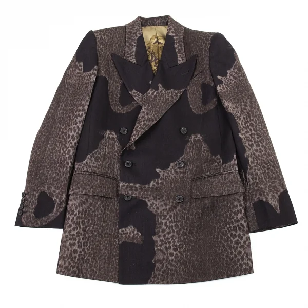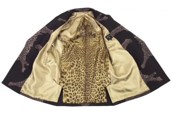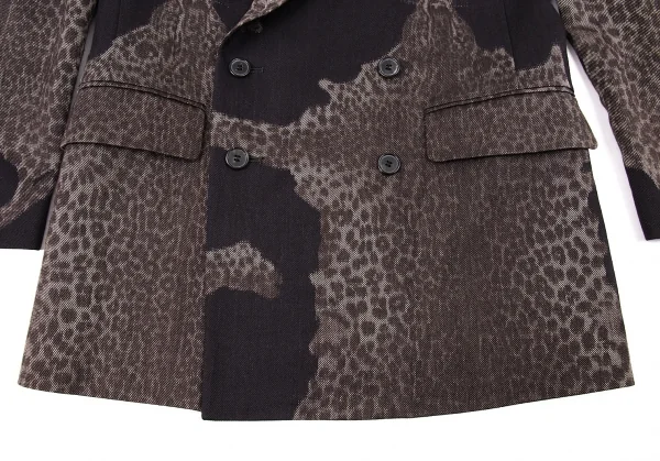 ジャンポールゴルチエ ファムJean Paul GAULTIER FEMME ヒョウ毛皮柄織りウールコットンダブルジャケット 黒グレーブラウン40