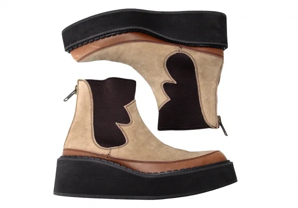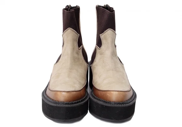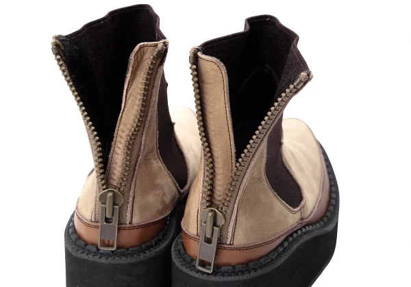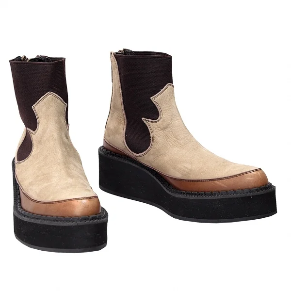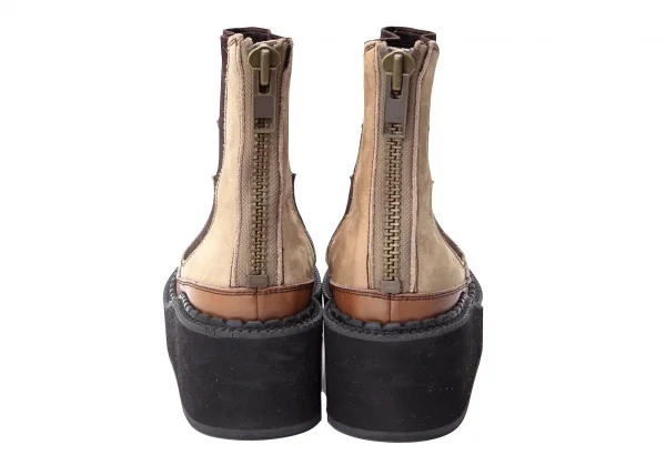 リミフゥLIMI feu カッティングレザーバックジッププラットフォームブーツ ベージュ茶他M(23.5位)