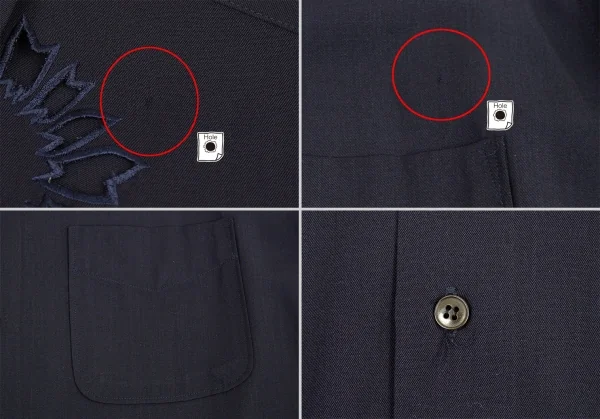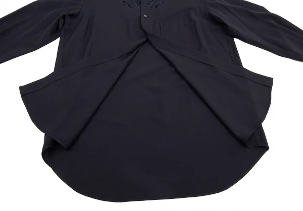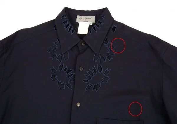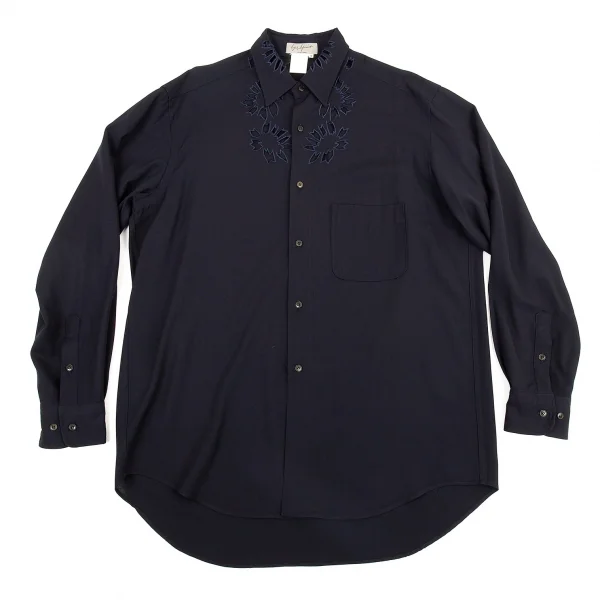 ヨウジヤマモト プールオムYohji Yamamoto POUR HOMME花と少年期 ウールギャバフラワーカットワークデザインシャツ 紺M