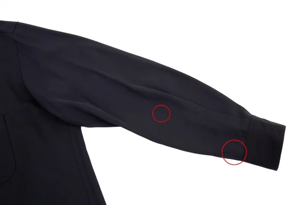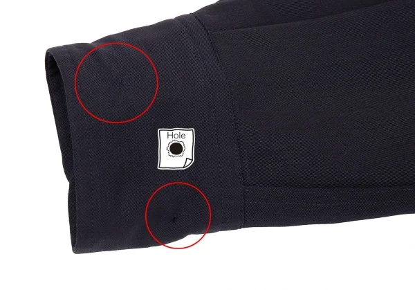 品質表示タグに劣化あり、前身頃・前後裾・両袖に穴が多数あります。右袖中央にダメージ、後ろ左袖先に破れがあります(画像参照)。その他目立ったシミ、汚れ、ほつれ等ありません。クリーニング済み