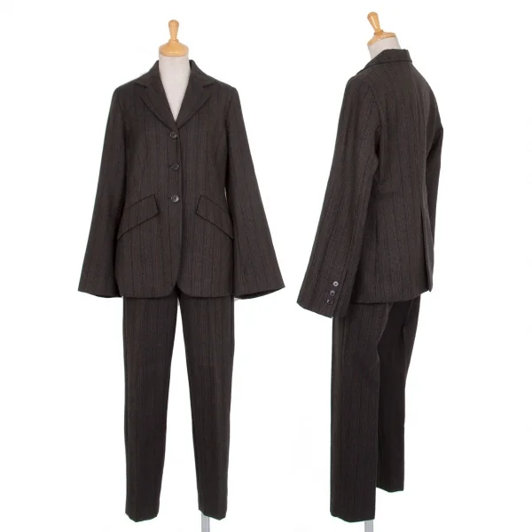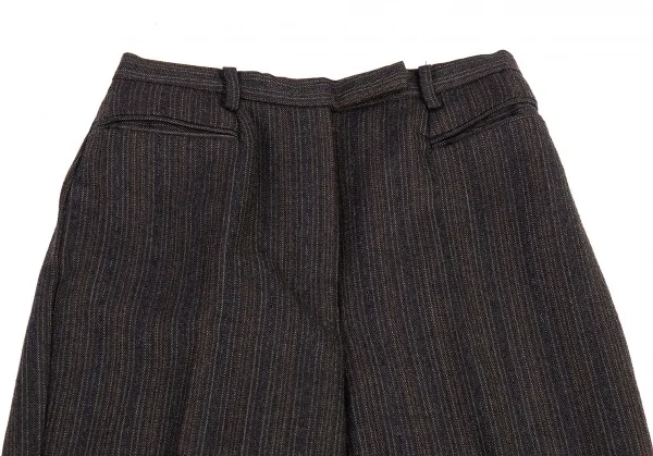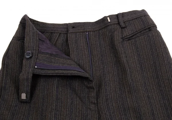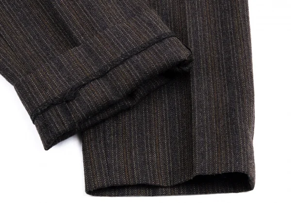 ジジリgigli ストライプデザインウールレーヨンパンツ 茶系38(M)