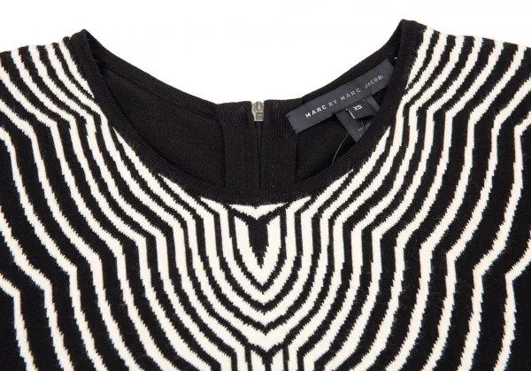 マークバイマークジェイコブスMARC by MARC JACOBS ストライプボーダーデザインニットワンピース 白黒XS