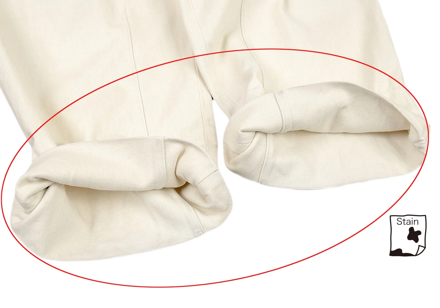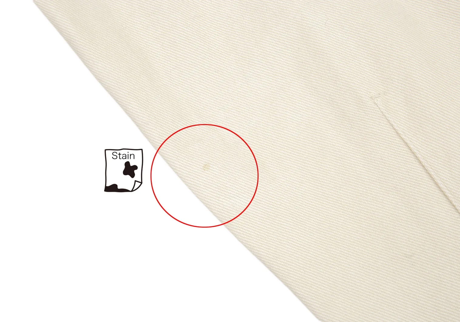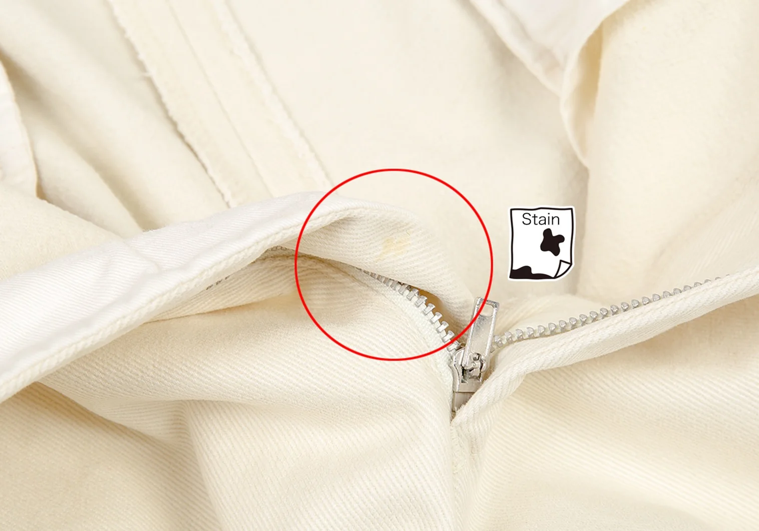 ウエスト一部ゴムが入っています。裏起毛になっています。前ジップ裏にシミ、前裾・裾裏に薄汚れ、後ろ裾に薄汚れ・薄シミがあります(画像参照)。その他目立ったシミ、汚れ、ほつれ等ありません。クリーニング済み