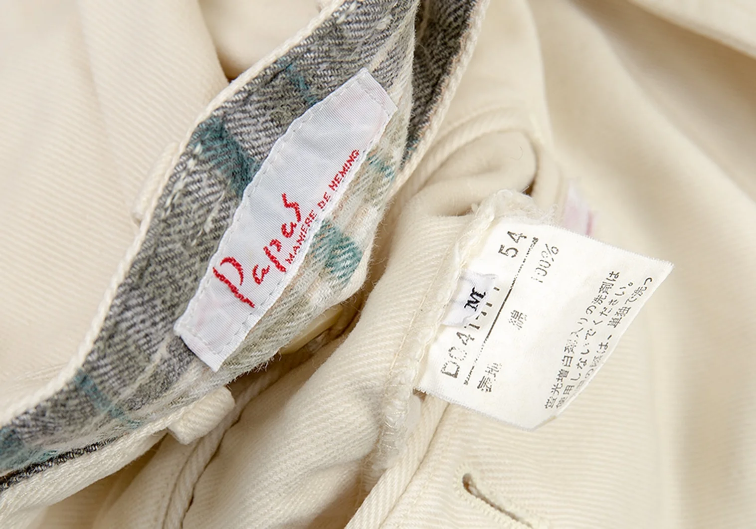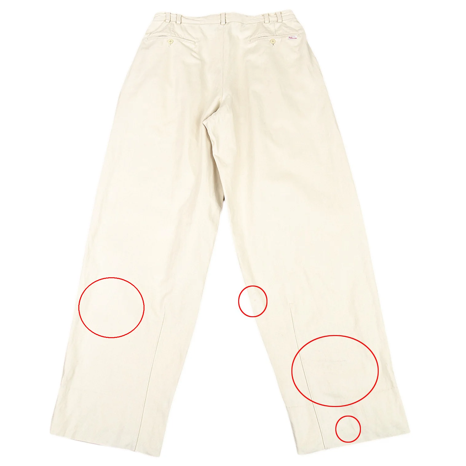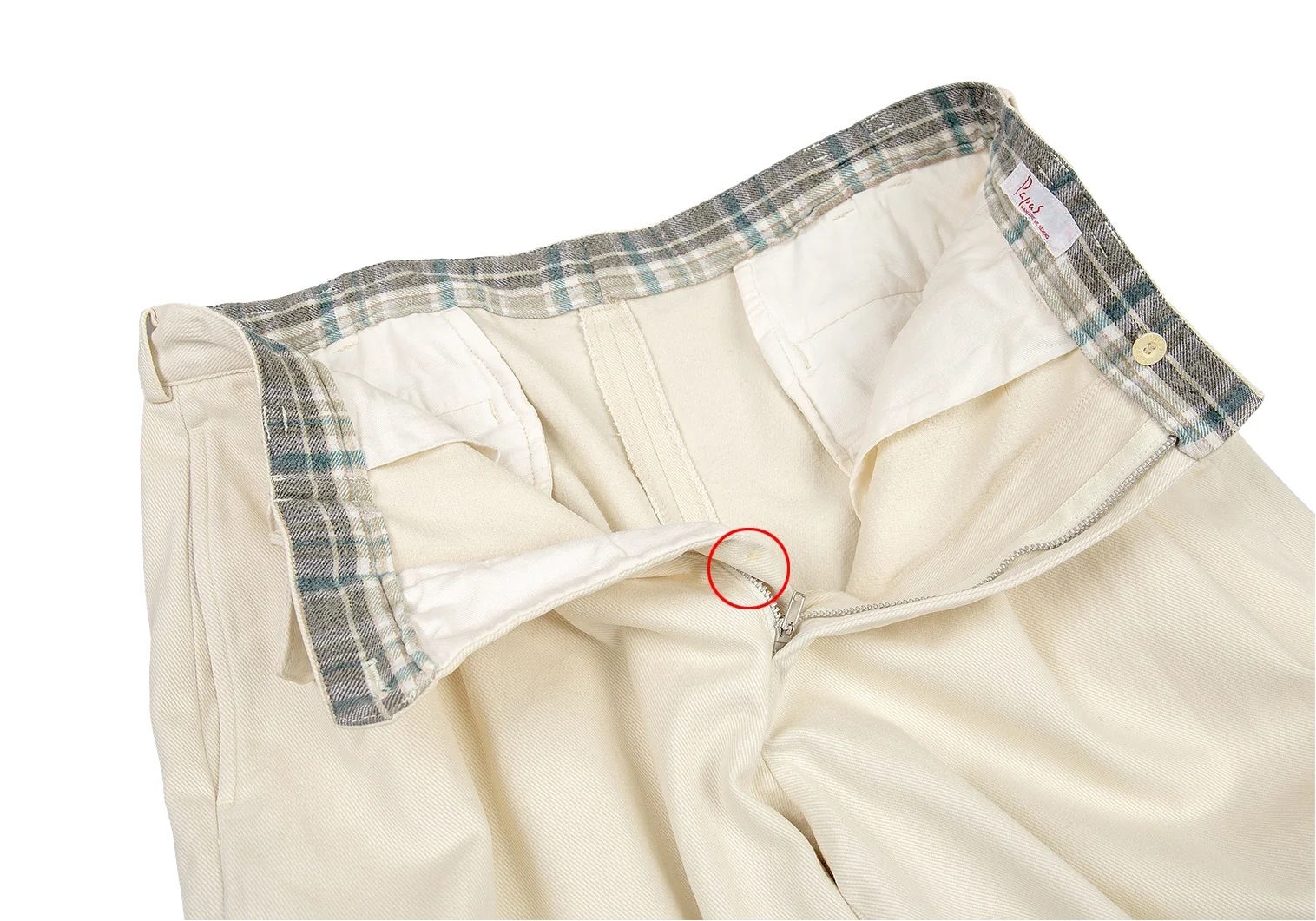 ウエスト一部ゴムが入っています。裏起毛になっています。前ジップ裏にシミ、前裾・裾裏に薄汚れ、後ろ裾に薄汚れ・薄シミがあります(画像参照)。その他目立ったシミ、汚れ、ほつれ等ありません。クリーニング済み