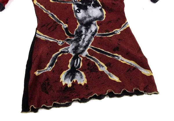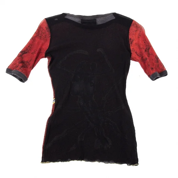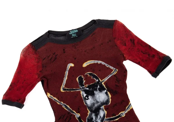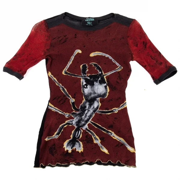 ジャンポールゴルチエ マイユJean Paul GAULTIER MAILLE アントプリントパワーネットTシャツ レンガ黒他M位