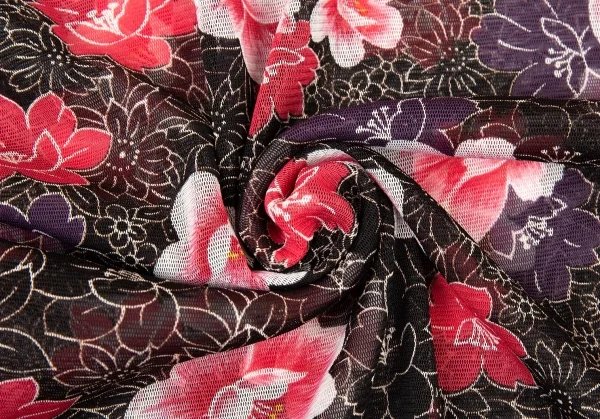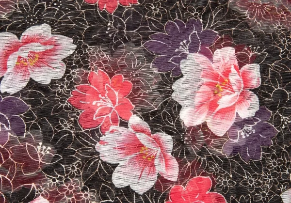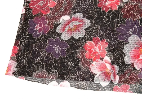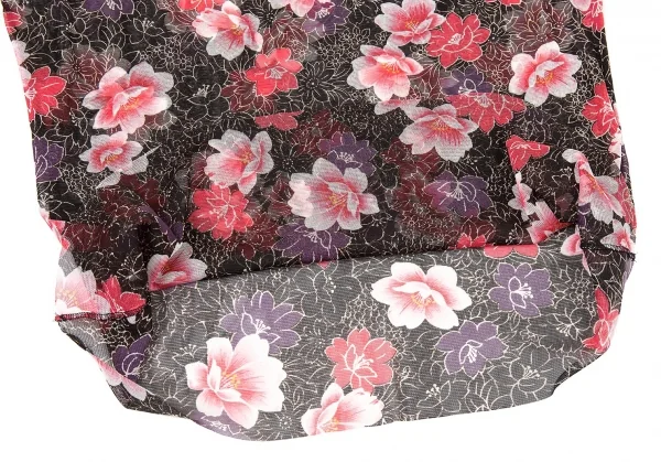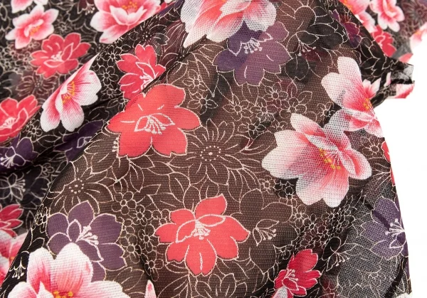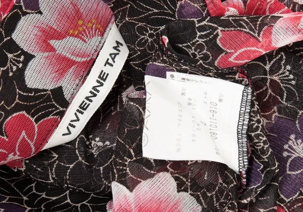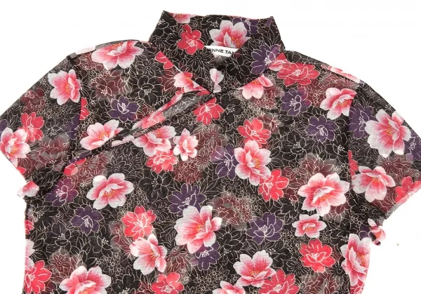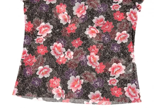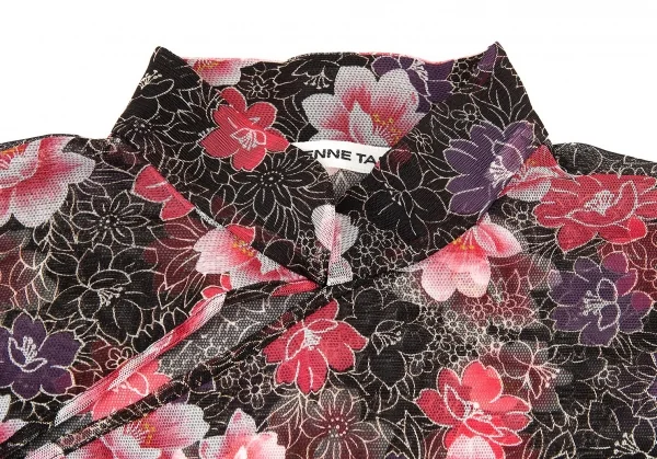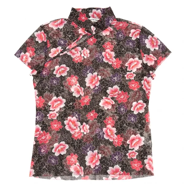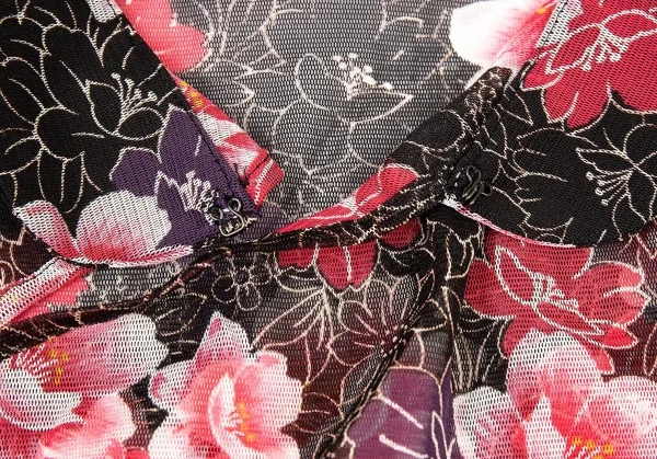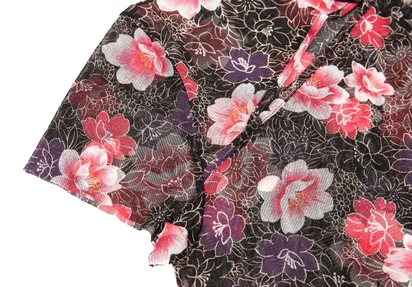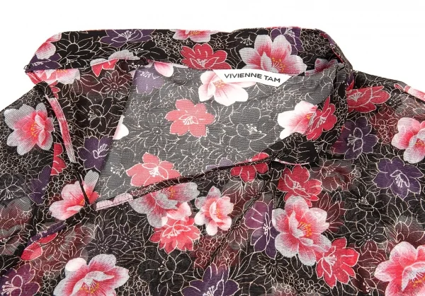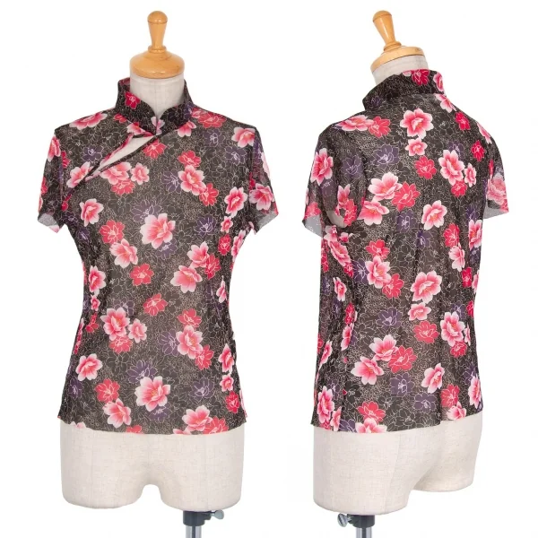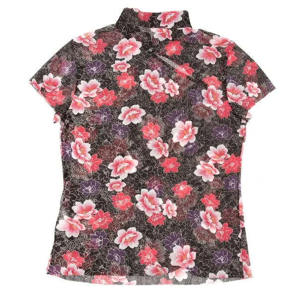 ヴィヴィアンタムVIVIENNETAM フラワープリントスタンドカラーパワーネット半袖シャツ 黒ピンク他0
