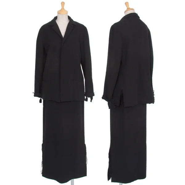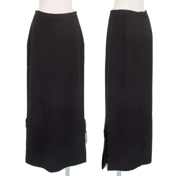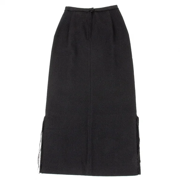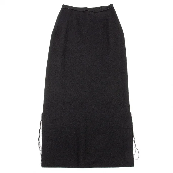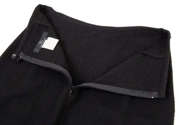 ワイズY's 断ち切りスリットロングウールスカート 黒3