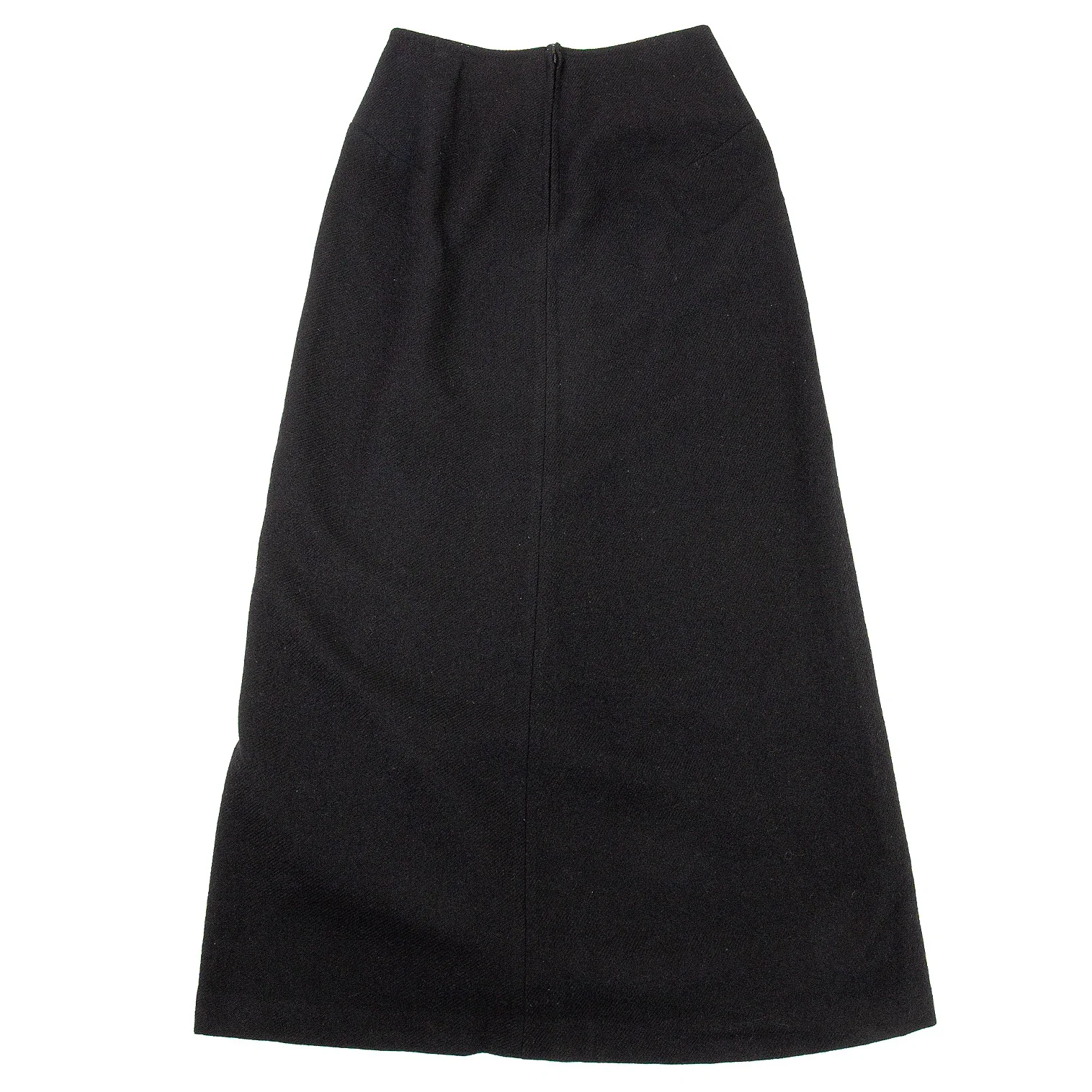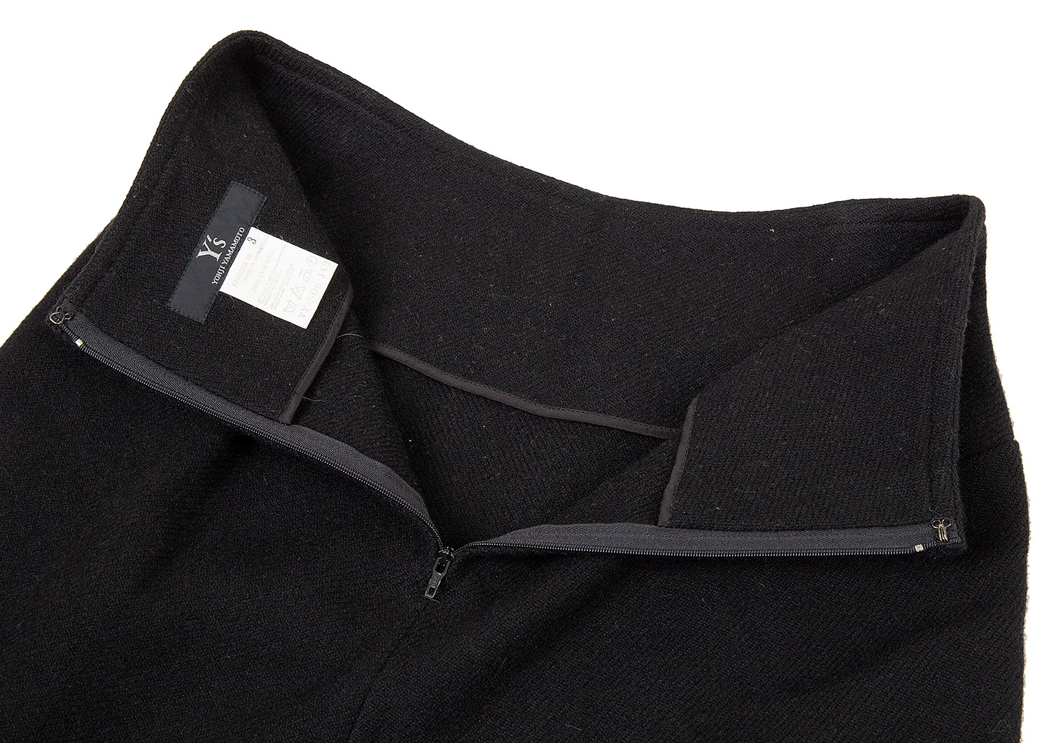 ワイズY's ウエスト切替ウールフレアースカート 黒3