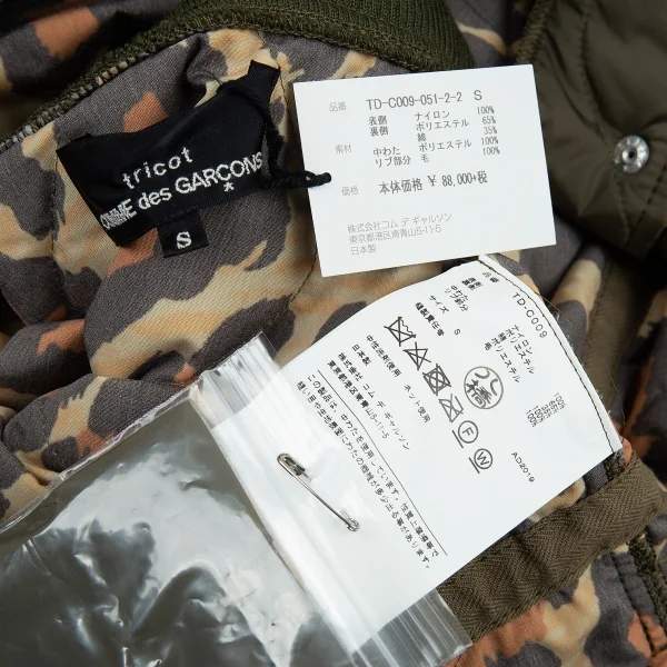 新品!トリココムデギャルソンtricot COMME des GARCONS 中綿ナイロンフードコート カーキS