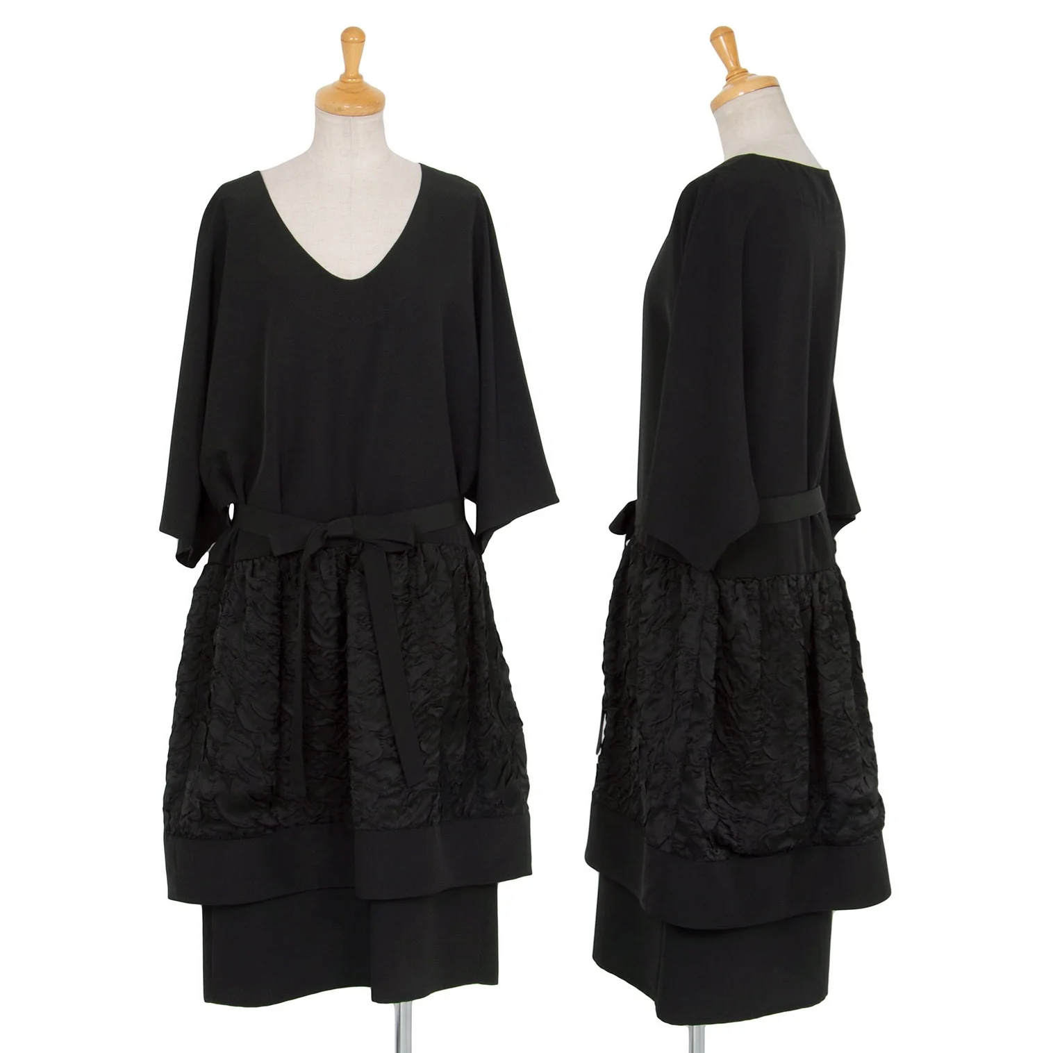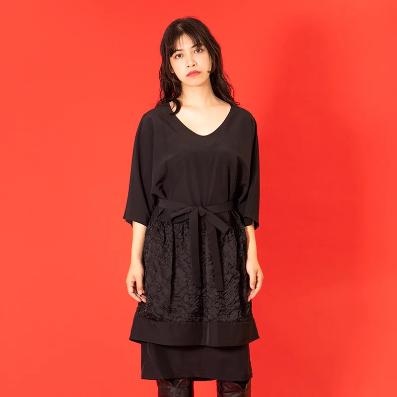 リミフゥLIMI feu シュリンク切替ドルマンレイヤードワンピース 黒S