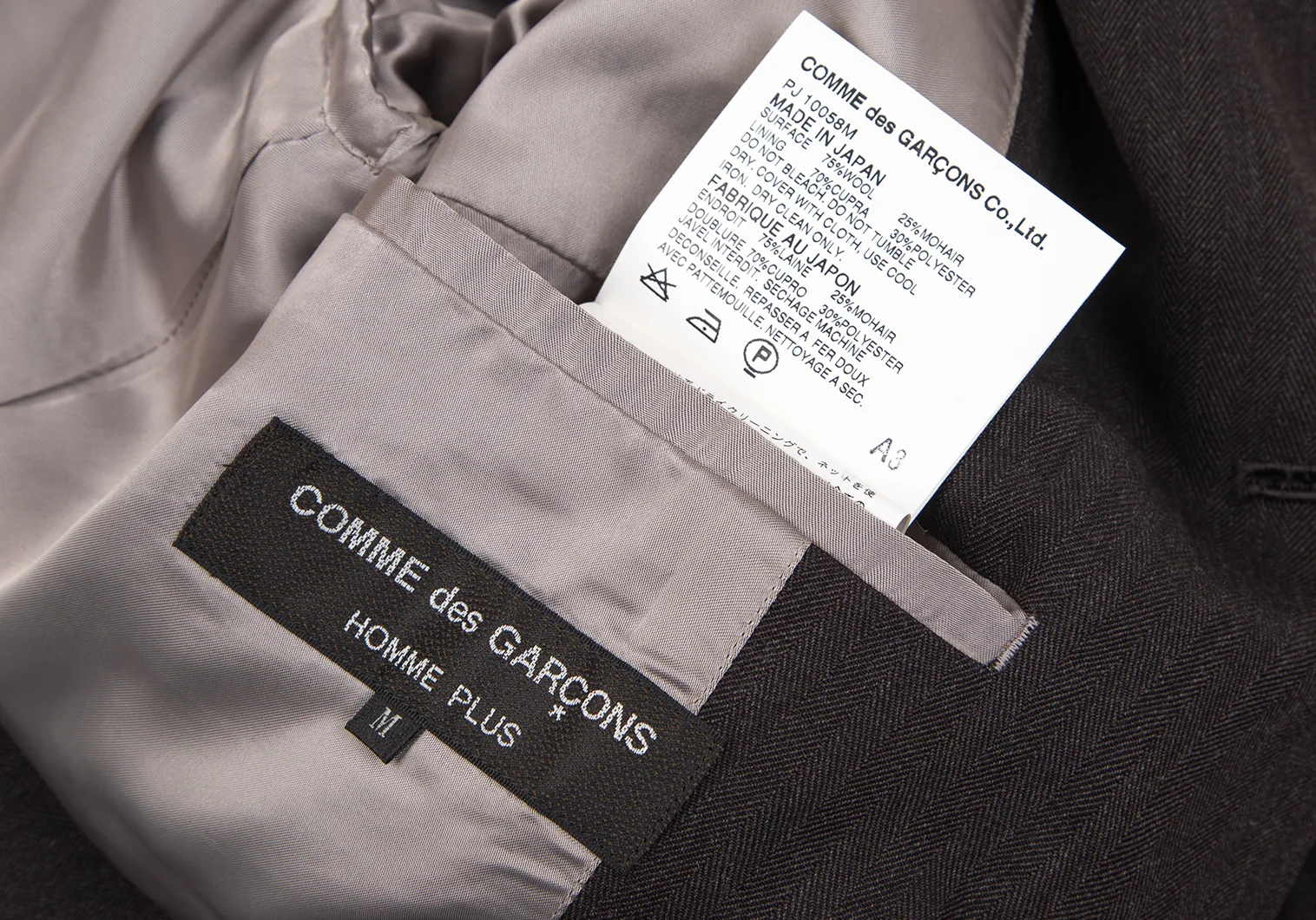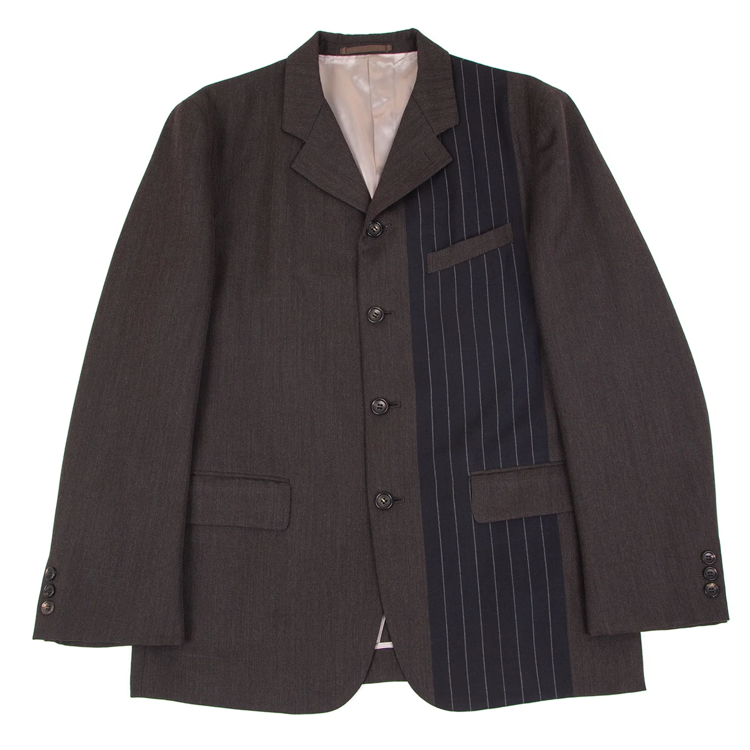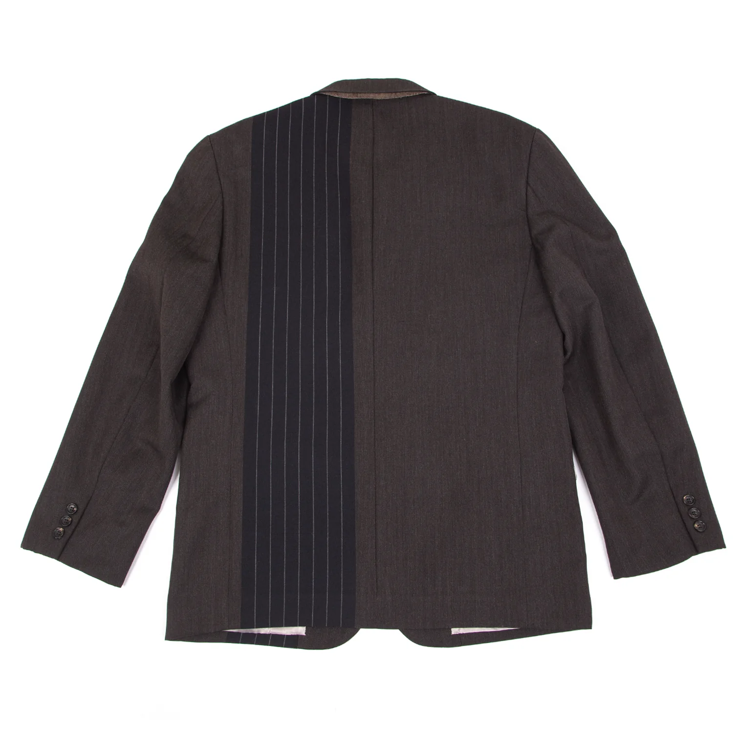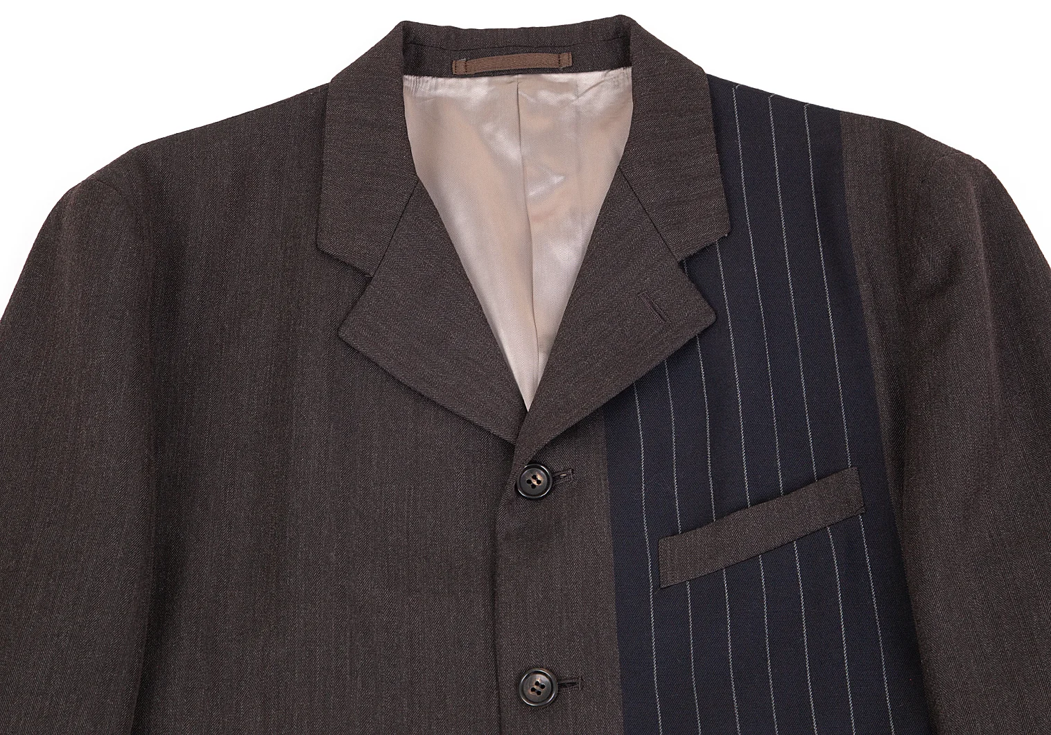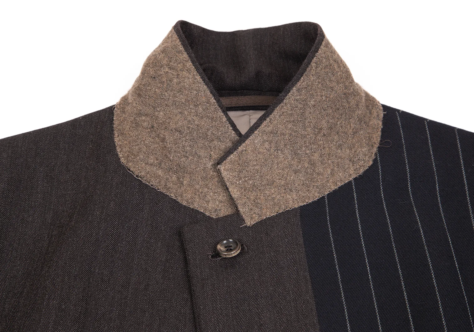 コムデギャルソン オムプリュスCOMME des GARCONS HOMME PLUS ウールモヘヤストライプ切替デザインジャケット 茶紺M