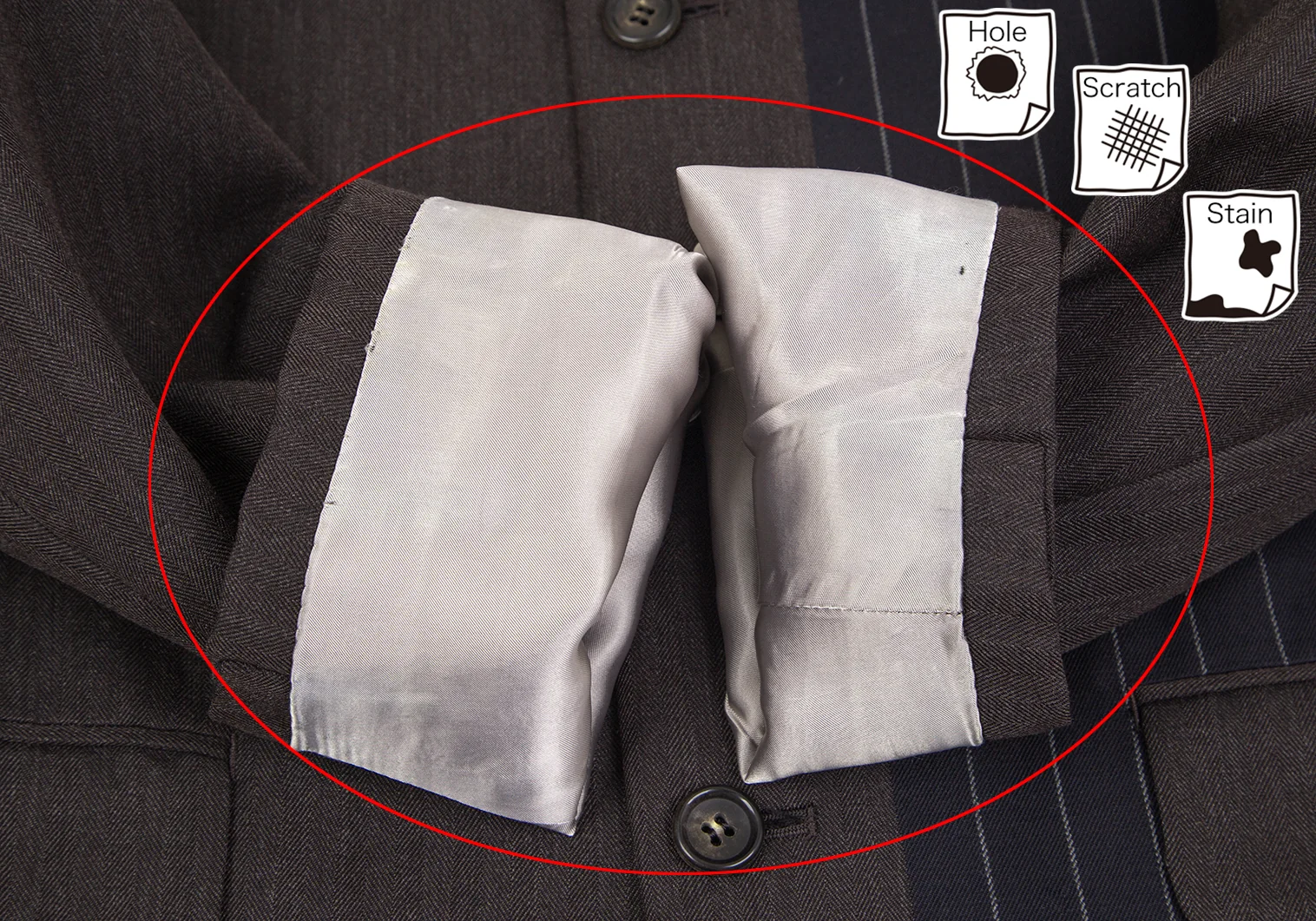 2001S/S コレクション着用アイテムです。袖裏に擦れ・小穴・薄汚れ、裏地に汚れ、右袖先に擦れがあります。(写真参照)その他に目立ったシミ、汚れ、ほつれ等はありません。クリーニング済み
