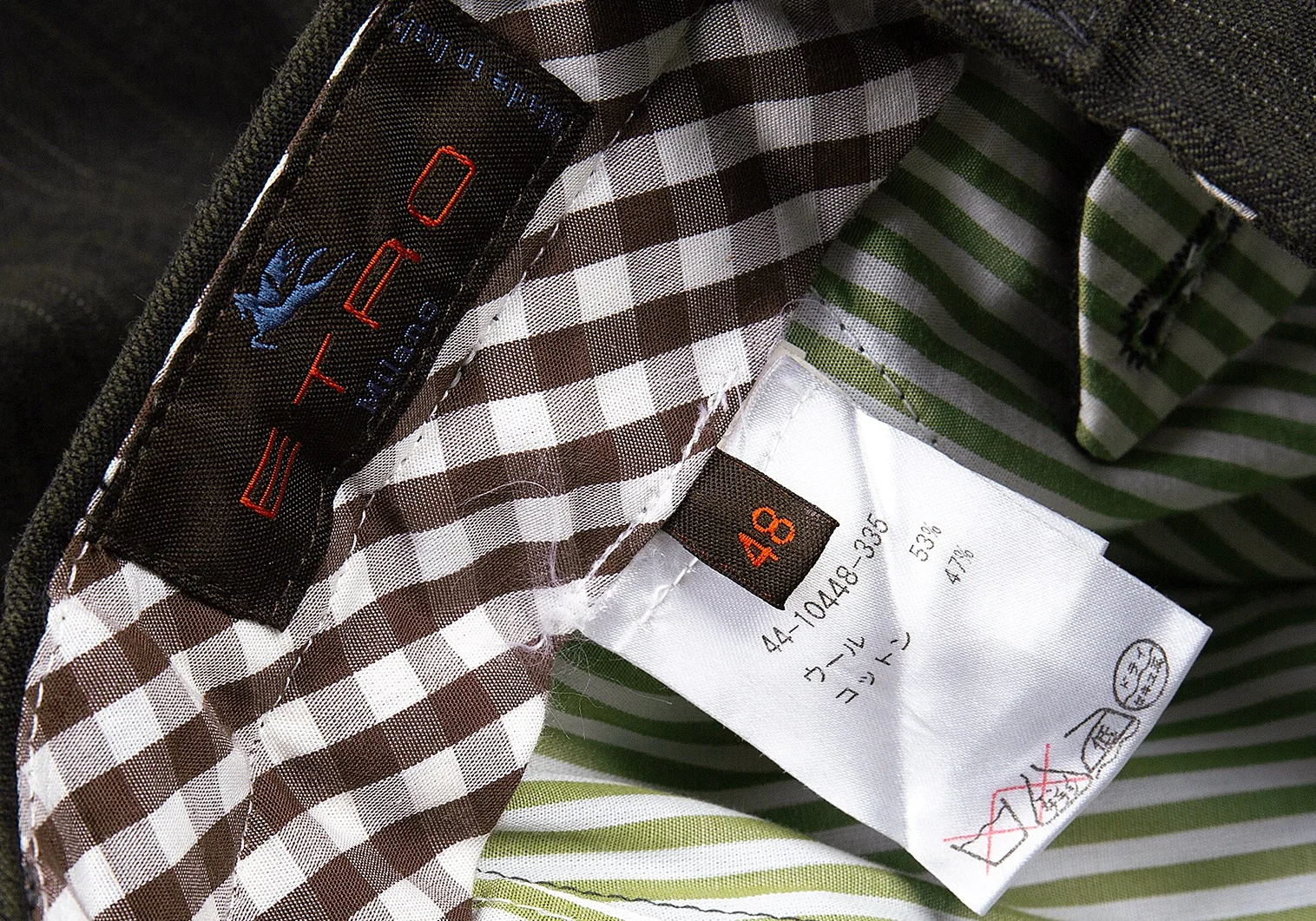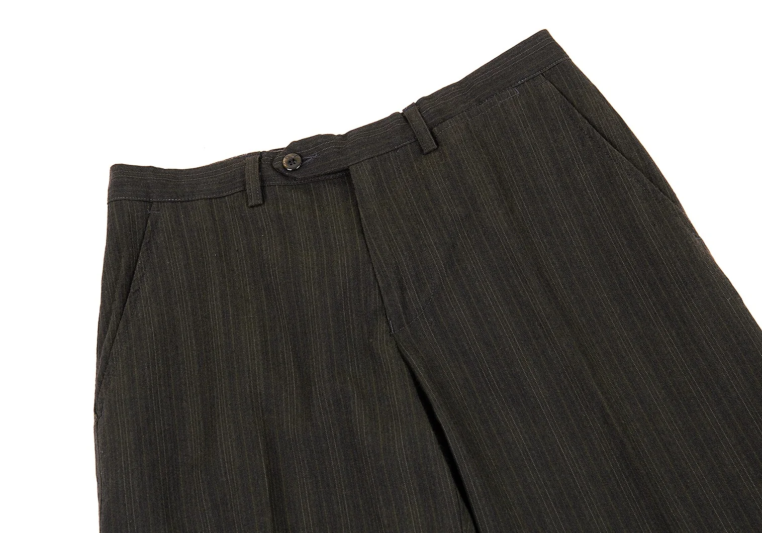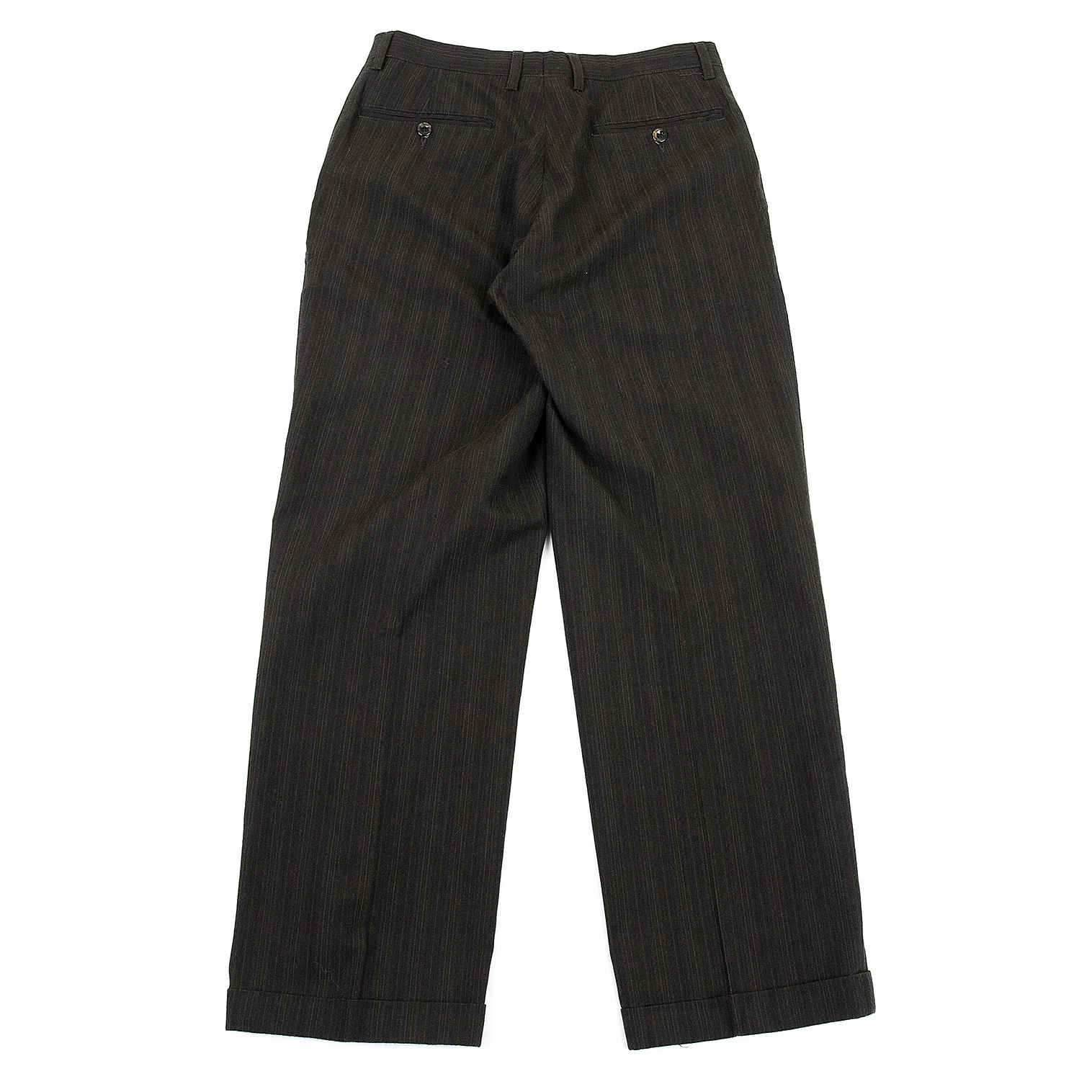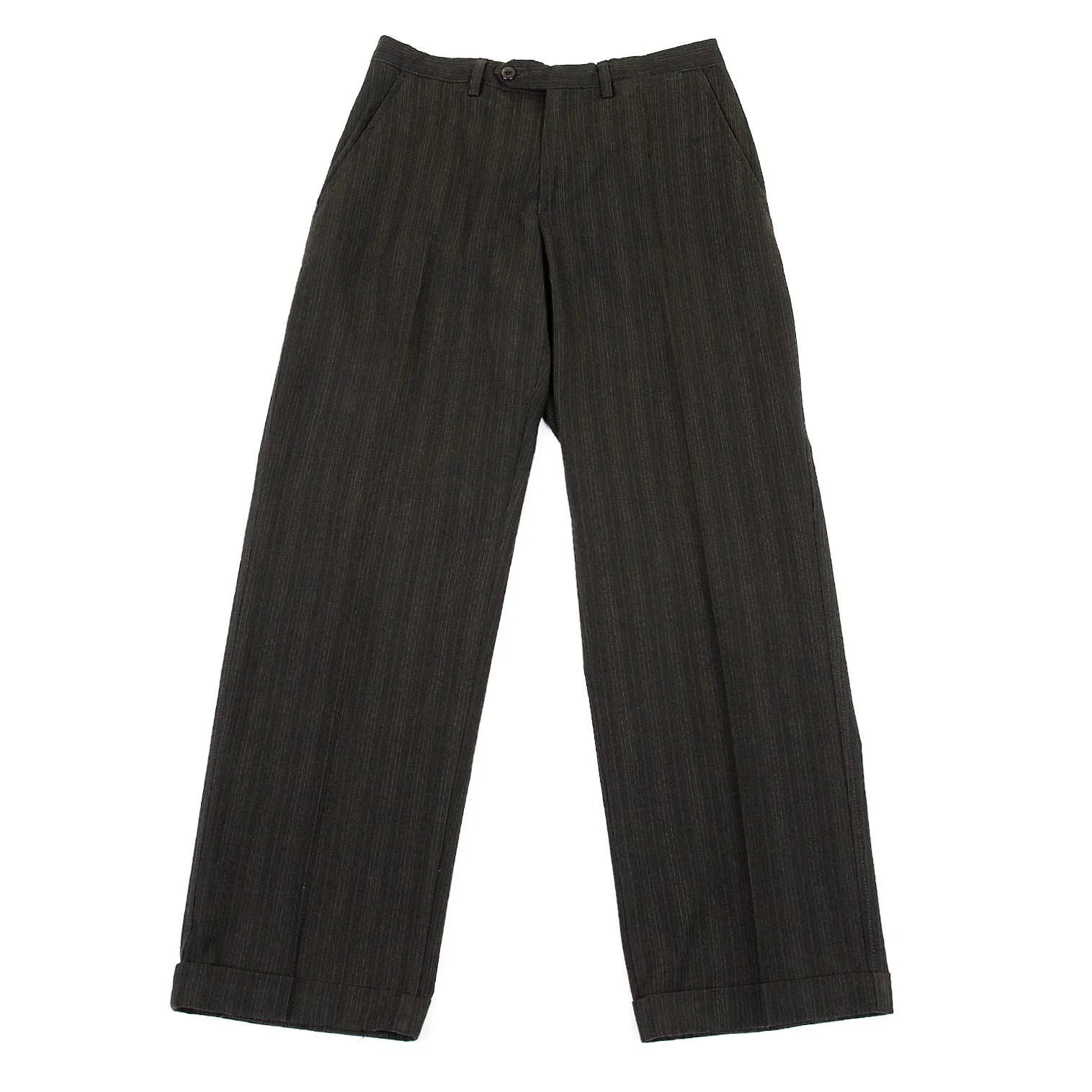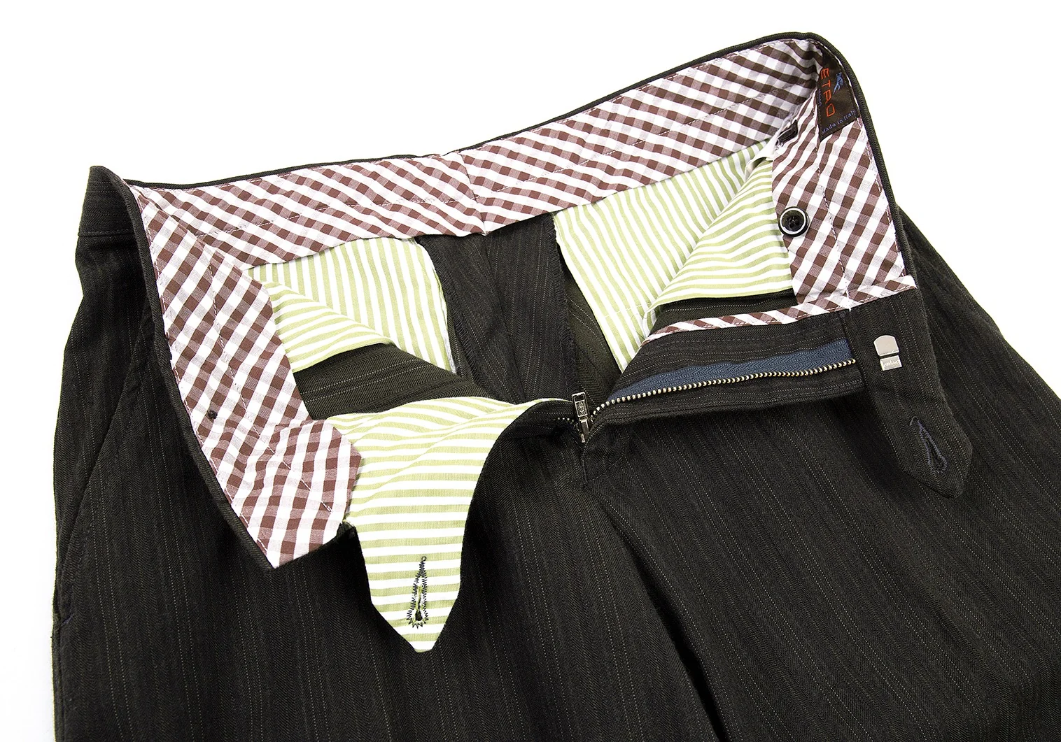 エトロETRO ウールコットンストライプパンツ チャコールカーキ48