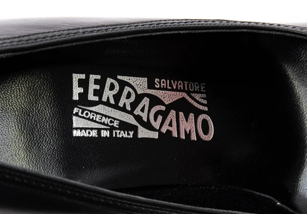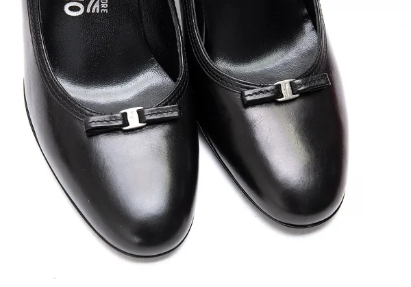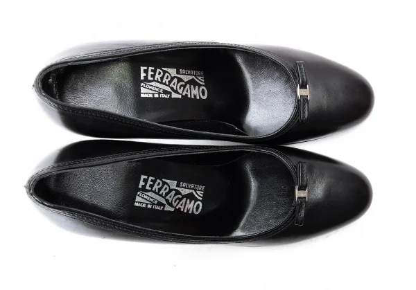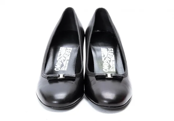 サルバトーレフェラガモSalvatoreFerragamo ミニリボンレザーヒールシューズ 黒6(23cm位)