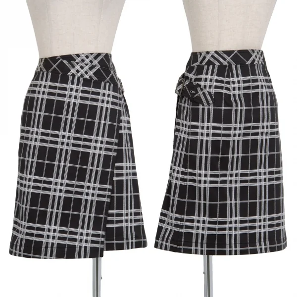 バーバリーロンドンBURBERRY LONDON コットンチェックラップスカート 黒白40