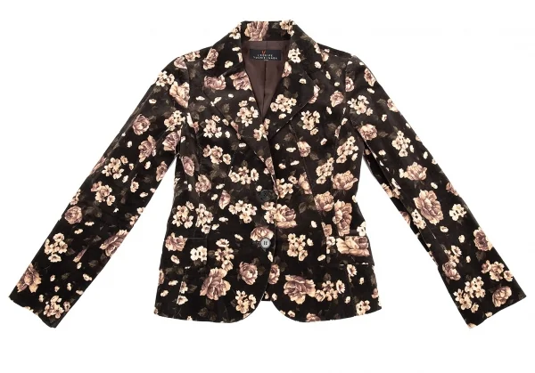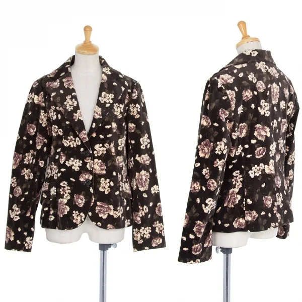 レキップヨシエイナバL'EQUIPE YOSHIE INABA フラワープリントベロアジャケット ダークブラウン他M位
