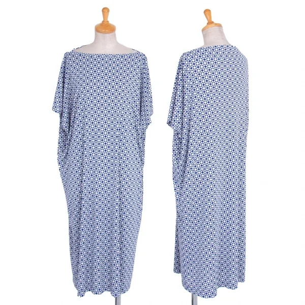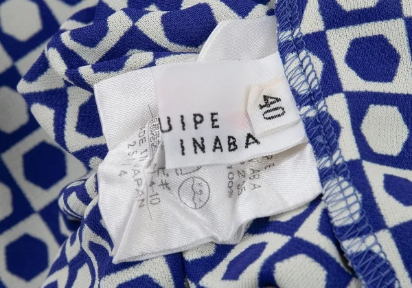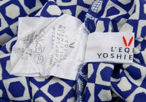 レキップヨシエイナバL'EQUIPE YOSHIE INABA ドットブロックチェックボートネックワンピース 白青40