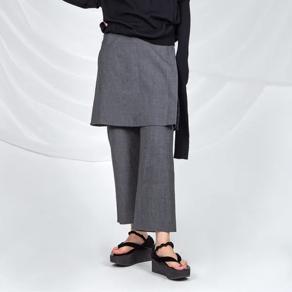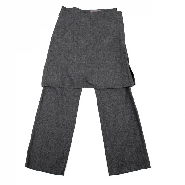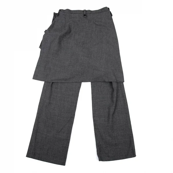 ヨウジヤマモト ノアールYohji Yamamoto NOIR 混紡コットンラップスカート付きパンツ グレー1