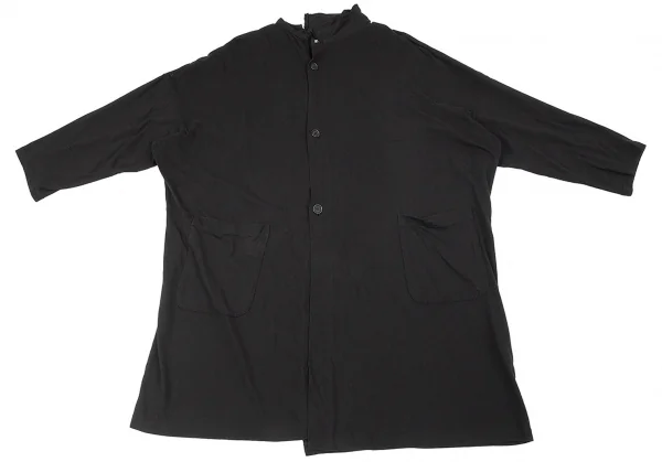ビーヨウジヤマモトB Yohji Yamamoto バックロゴプリント天竺裁ち切りビッグシルエットシャツ 黒2