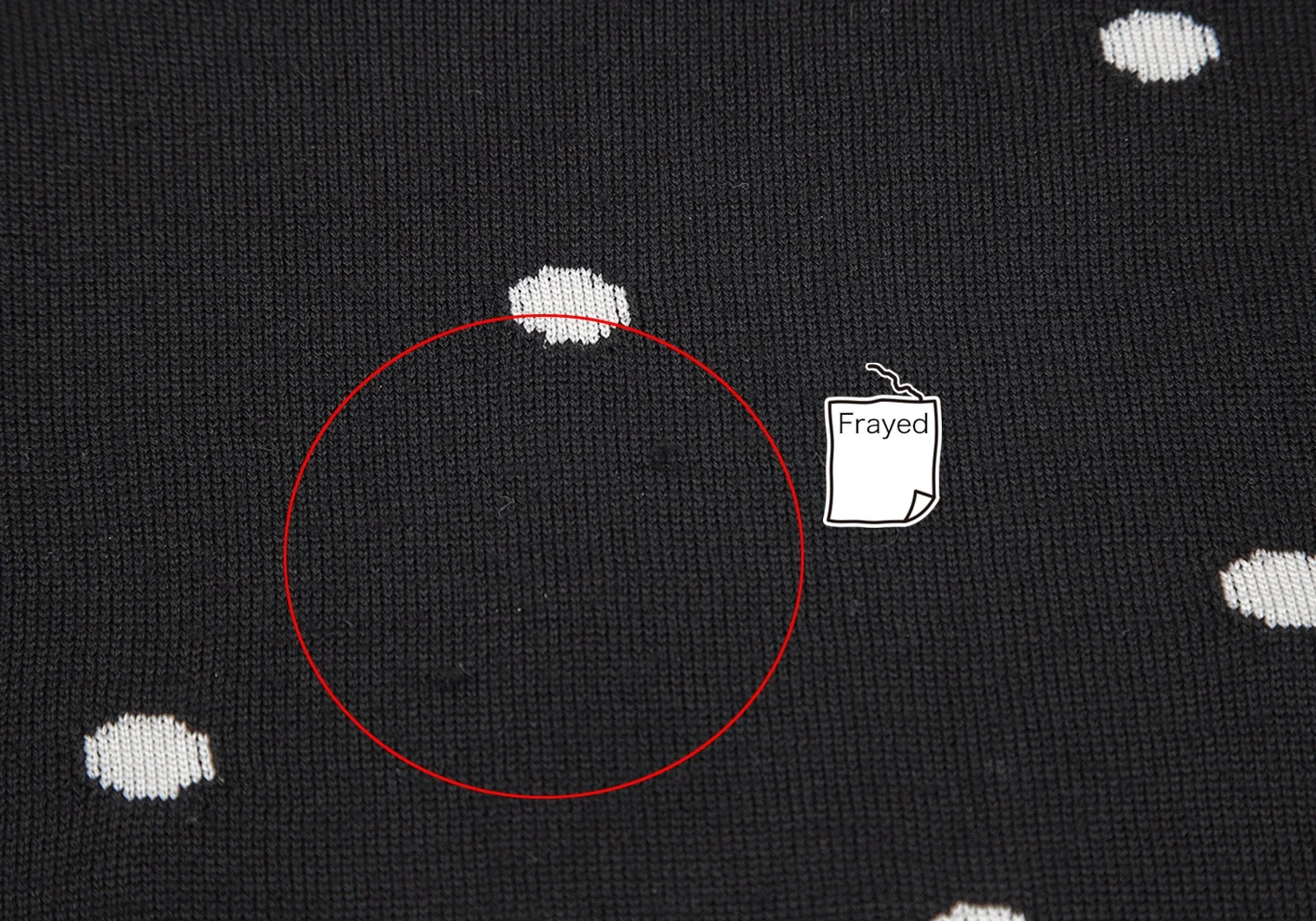 左肩・胸元・右袖に引っ掛け、前身頃に点シミがあります(画像参照)。その他目立ったシミ、汚れ、ほつれ等ありません。クリーニング済み