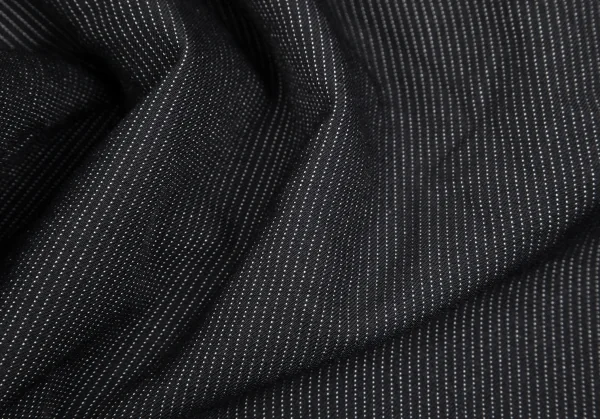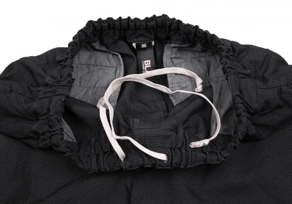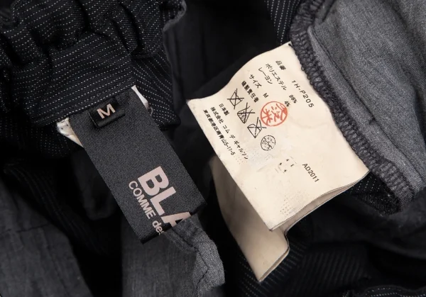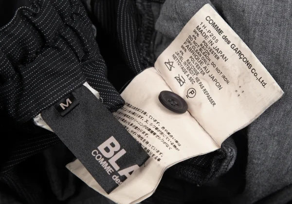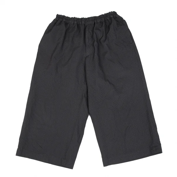 ブラックコムデギャルソンBLACK COMME des GARCONSエステルレーヨン製品染めピンストライプワイドクロップドパンツ 黒M