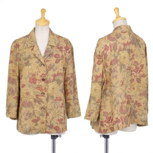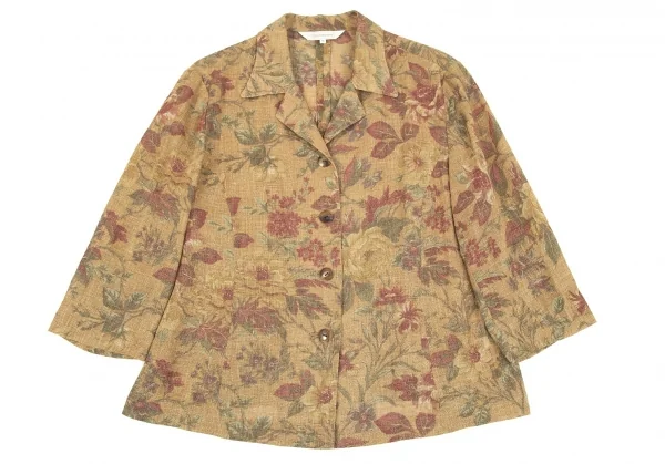 バーバリーズBurberrys' リネンウールフラワープリント七分袖ジャケット モカ他15