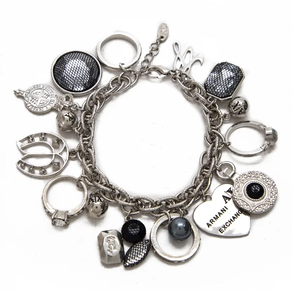 アルマーニ エクスチェンジARMANI EXCHANGE チャームデザインブレスレット シルバー黒