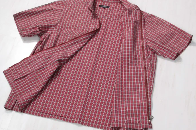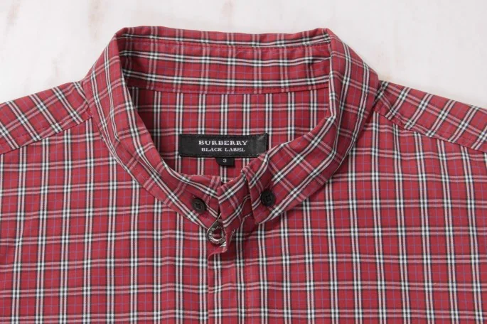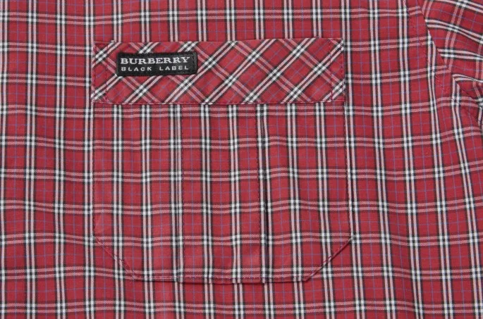 バーバリー ブラックレーベルBURBERRY BLACK LABEL 半袖ジップチェックシャツ エンジ3