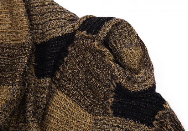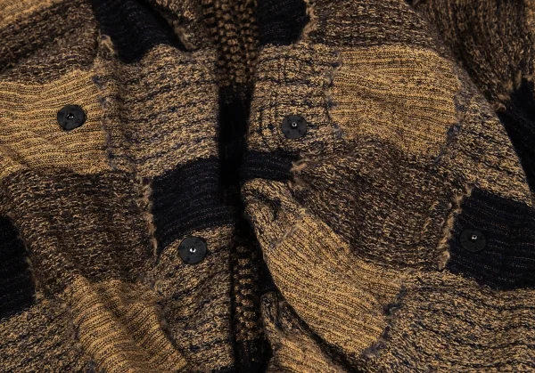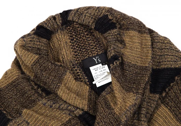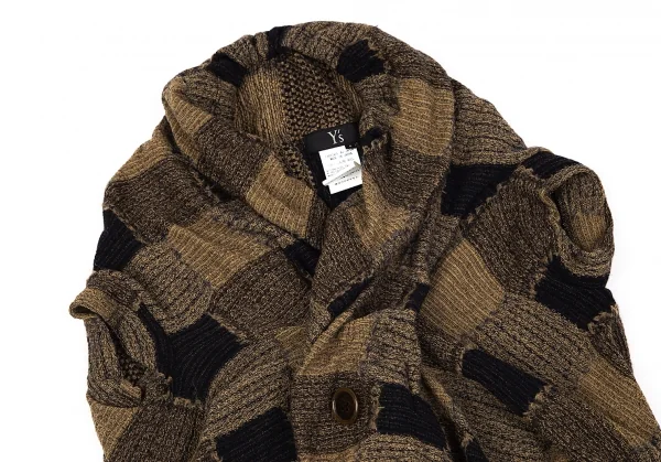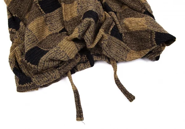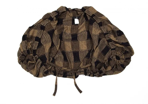 ワイズY's ドレープノースリーブチェックジャカードニット モカ黒2