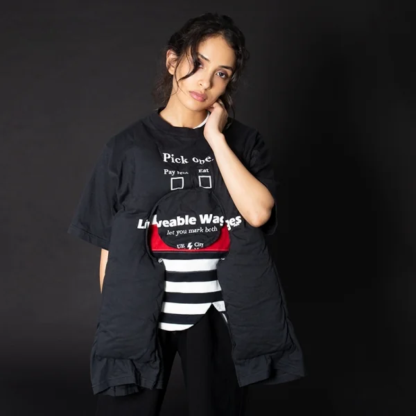コムデギャルソンCOMME des GARCONS 中綿変形プリントTシャツ 黒S位