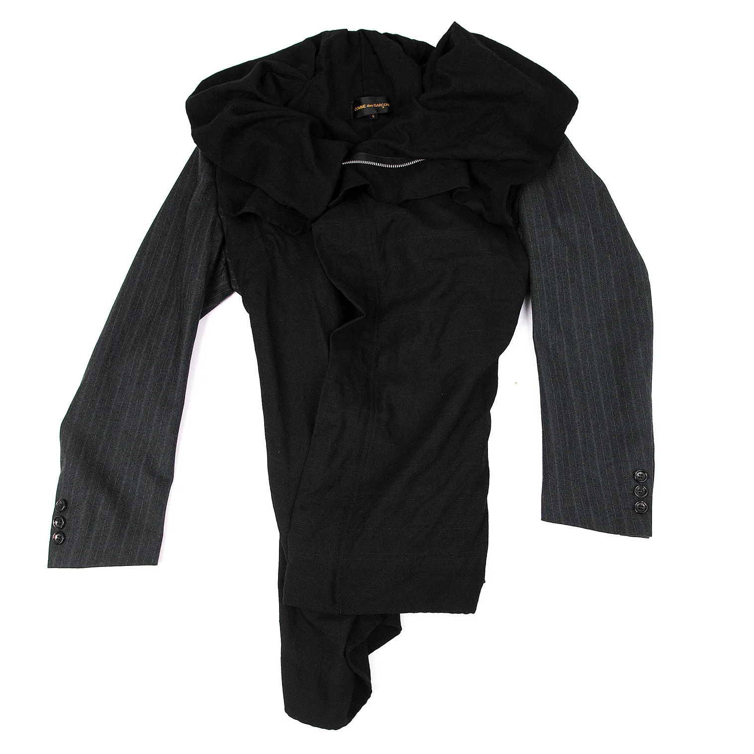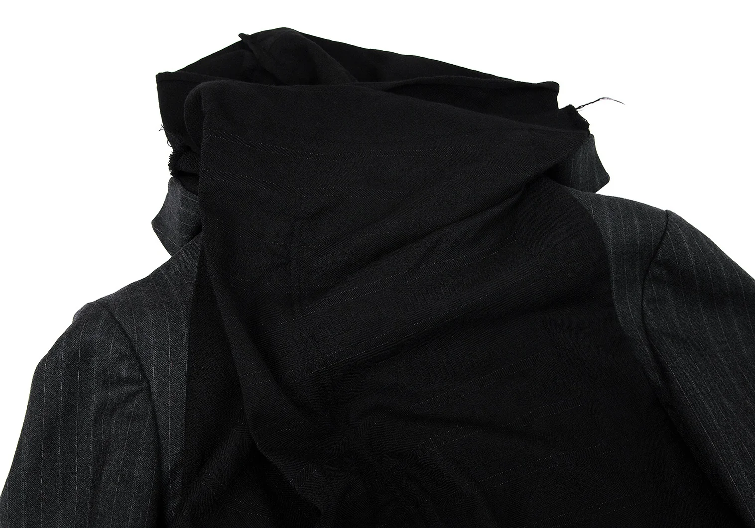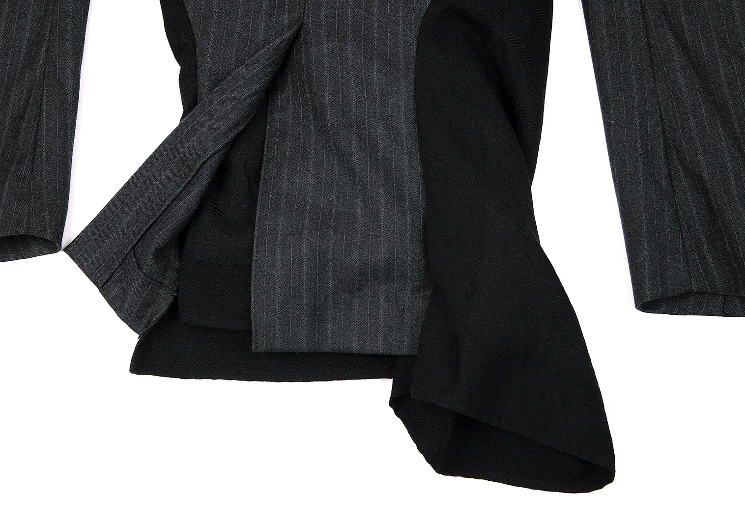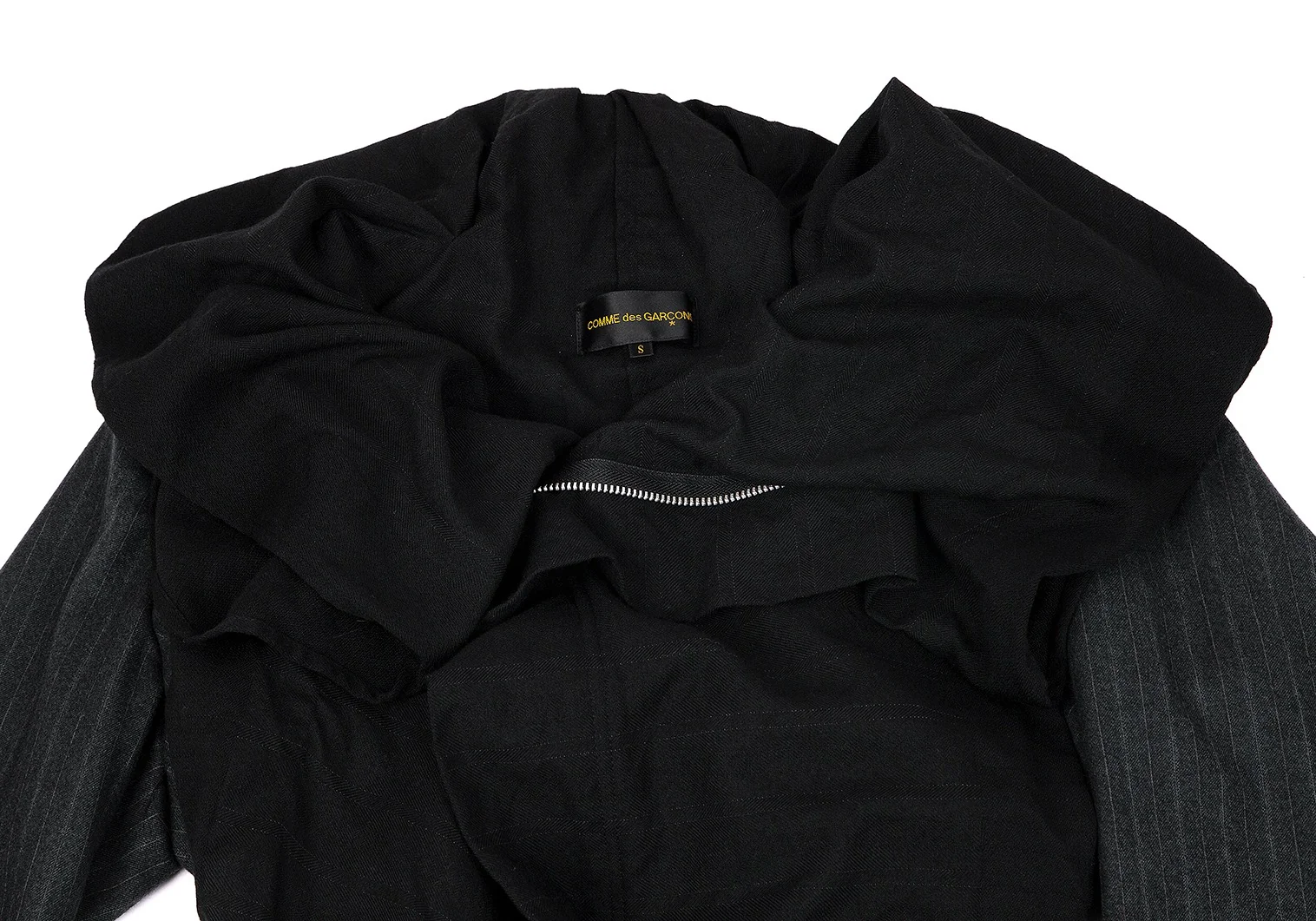 コムデギャルソンCOMME des GARCONS フロントドレープ切替ストライプジャケット 黒グレーS