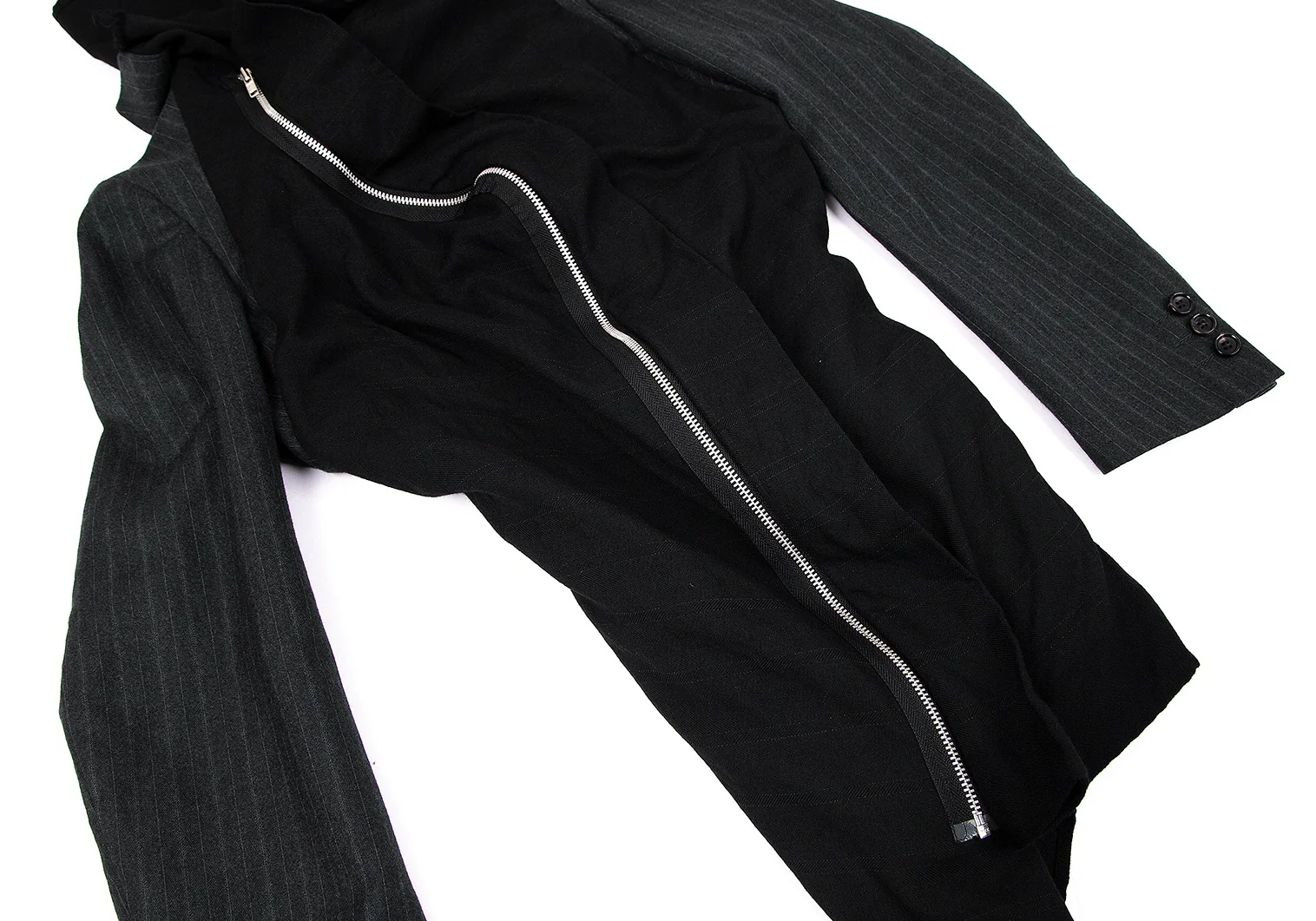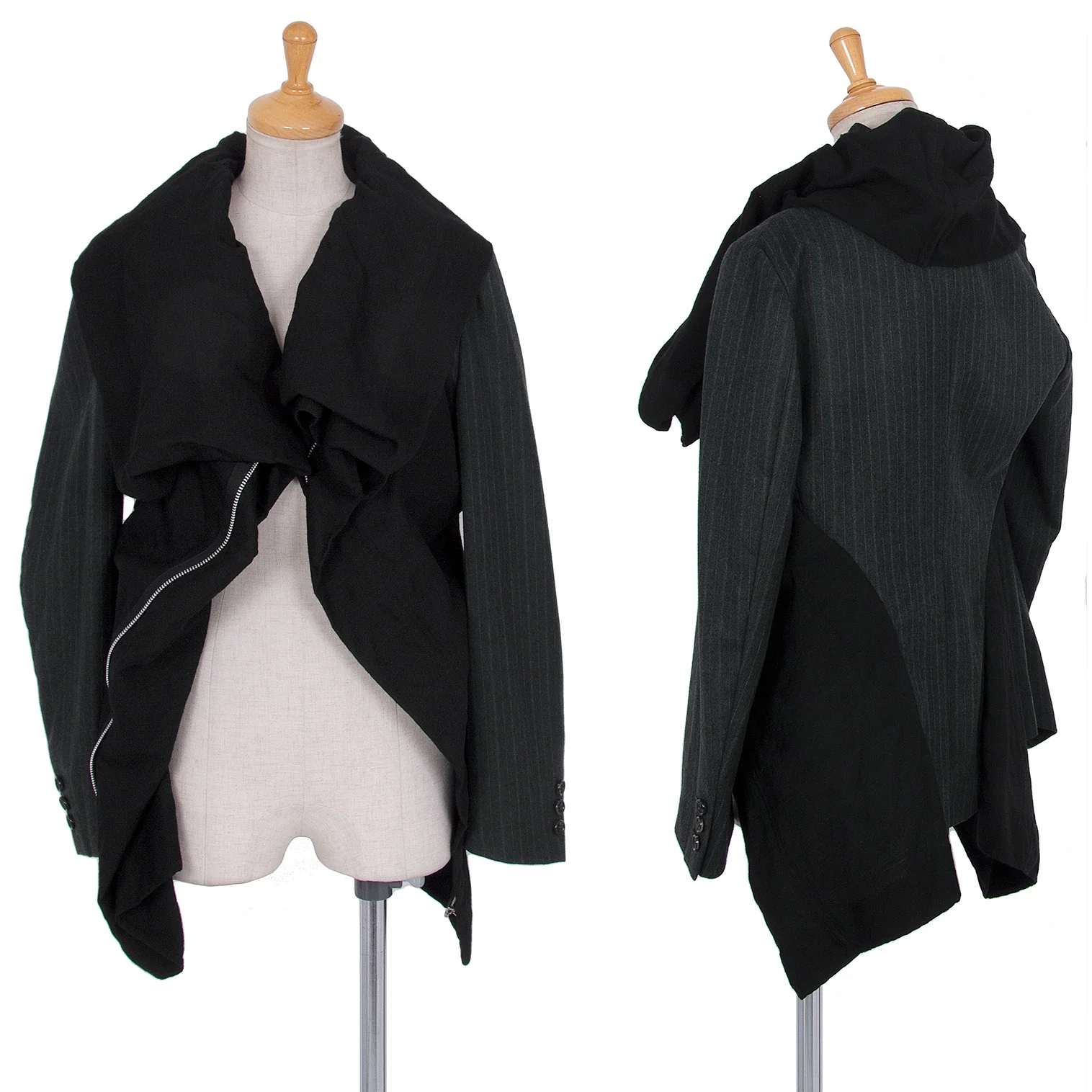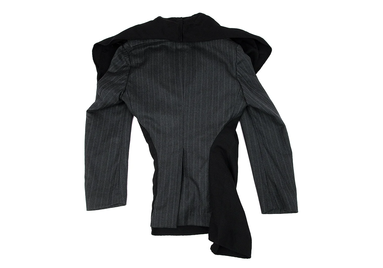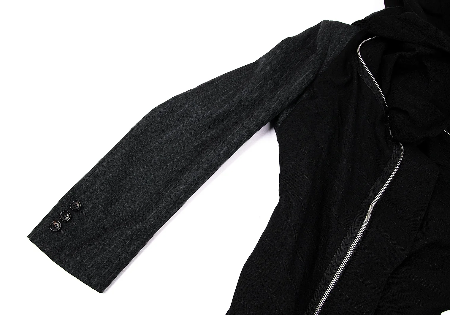 コムデギャルソンCOMME des GARCONS フロントドレープ切替ストライプジャケット 黒グレーS