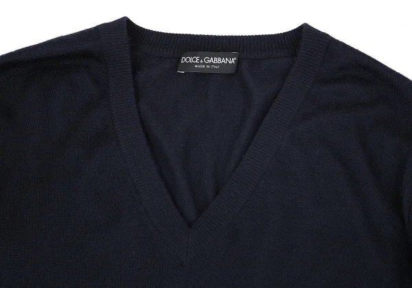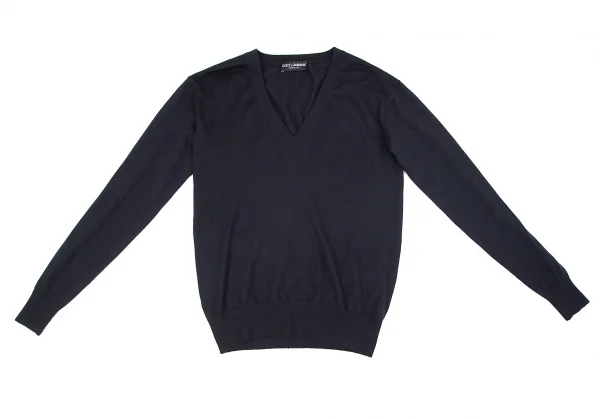 ドルチェ&ガッバーナDOLCE&GABBANA カシミアシルクVネックニットセーター 紺M位