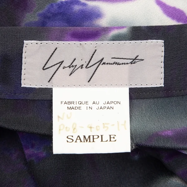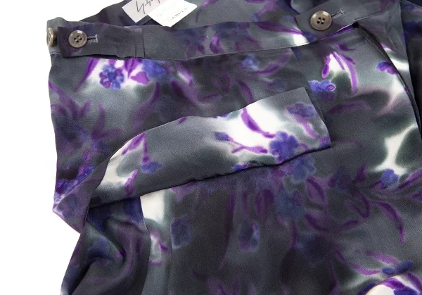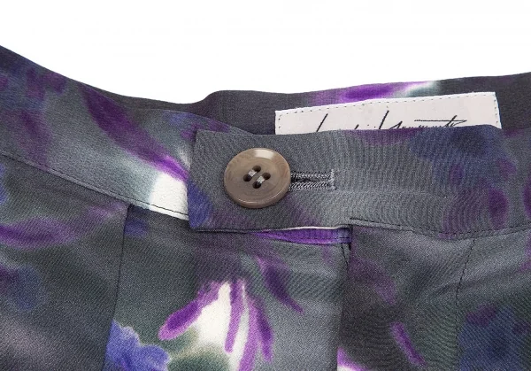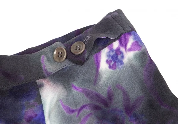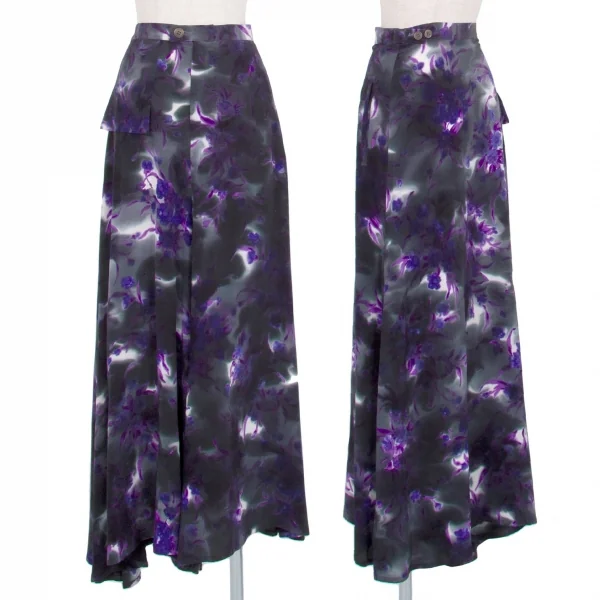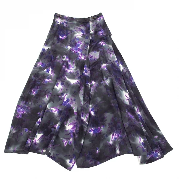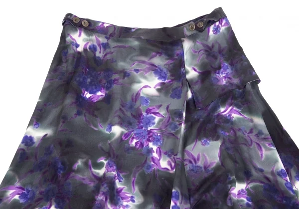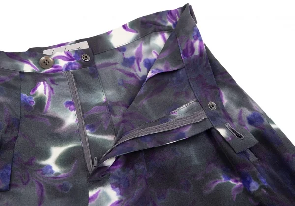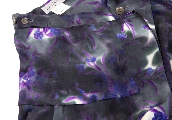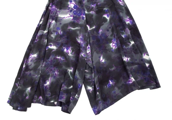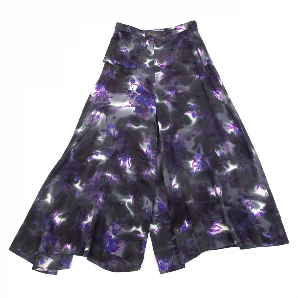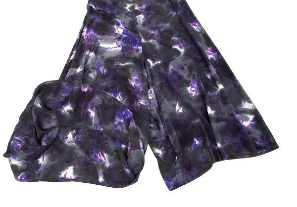 ヨウジヤマモト ファムYohji Yamamoto FEMME 花柄捺染スーパーワイドパンツ 墨黒パープル他M位