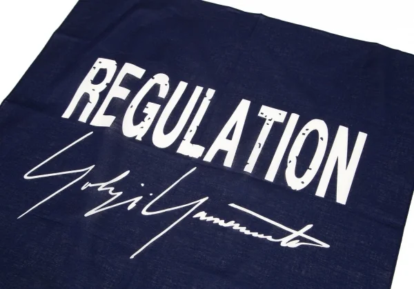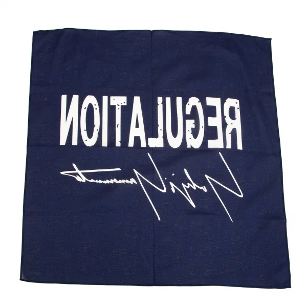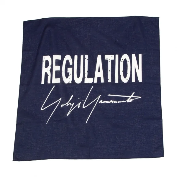 レギュレーション ヨウジヤマモトREGULATION yohji yamamoto ロゴプリントハンカチ 紺オフ