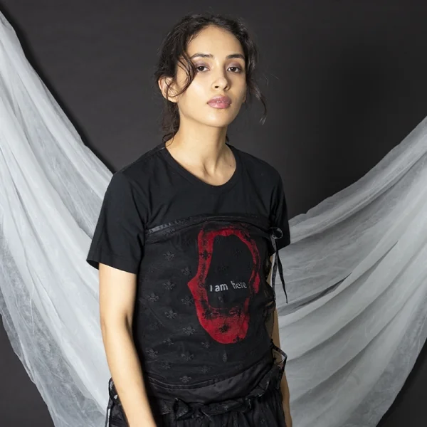 ヨウジヤマモト ファムYohji Yamamoto FEMME リッププリントTシャツ 黒2