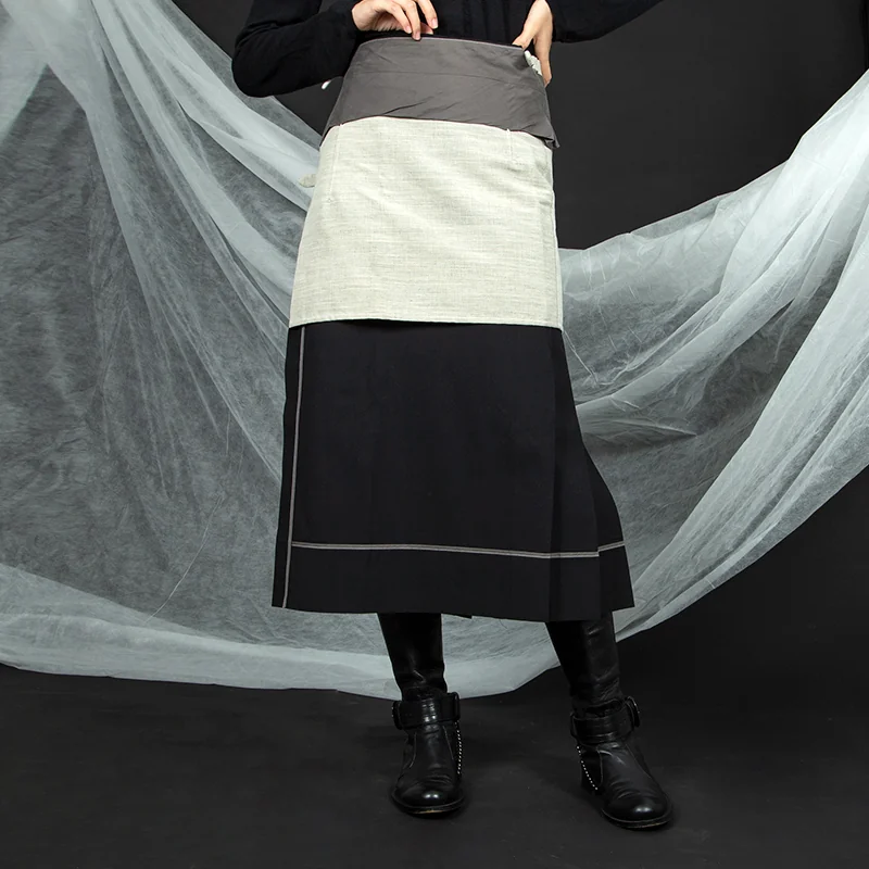 コムデギャルソンCOMME des GARCONS異素材切替インサイドアウトラップスカート 黒生成り他M