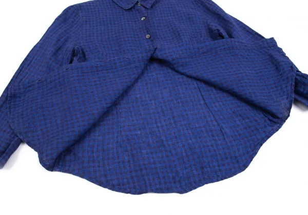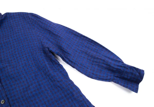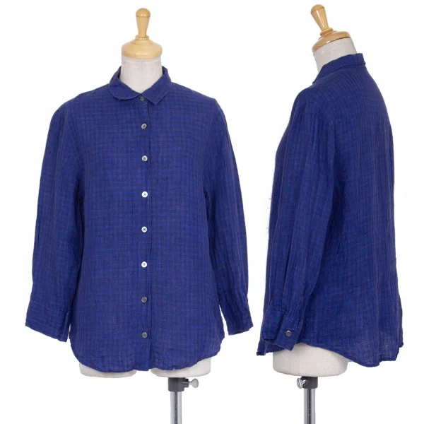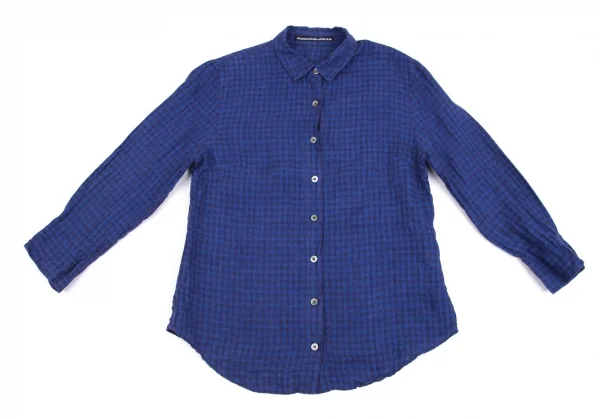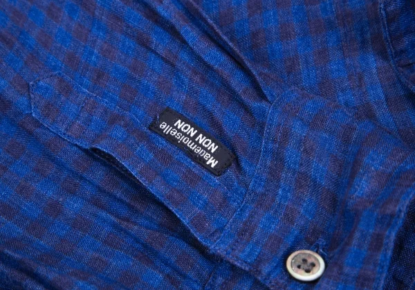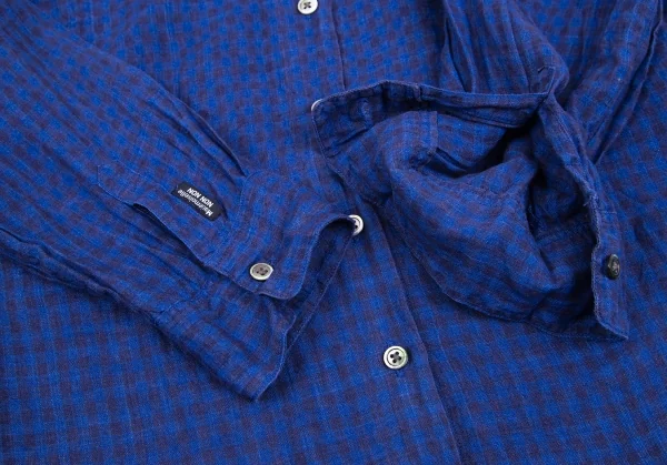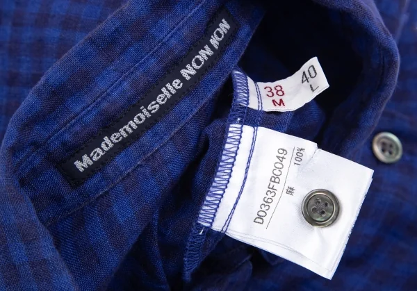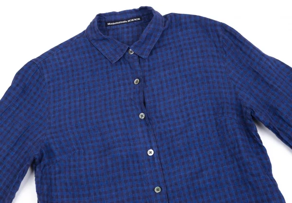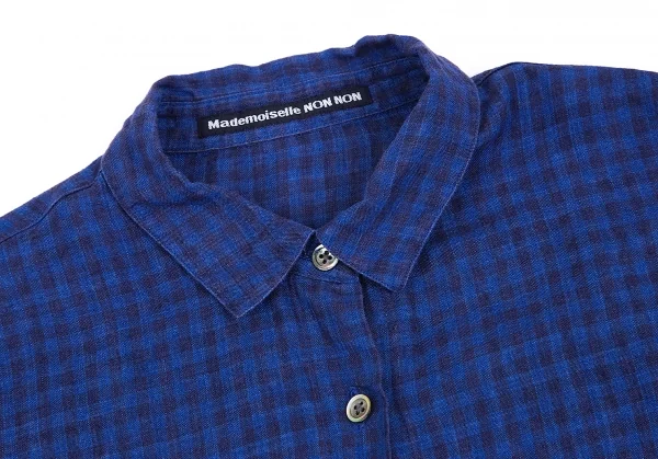 マドモアゼルノンノンMademoiselle NON NON リネンチェックシャツ 青38M
