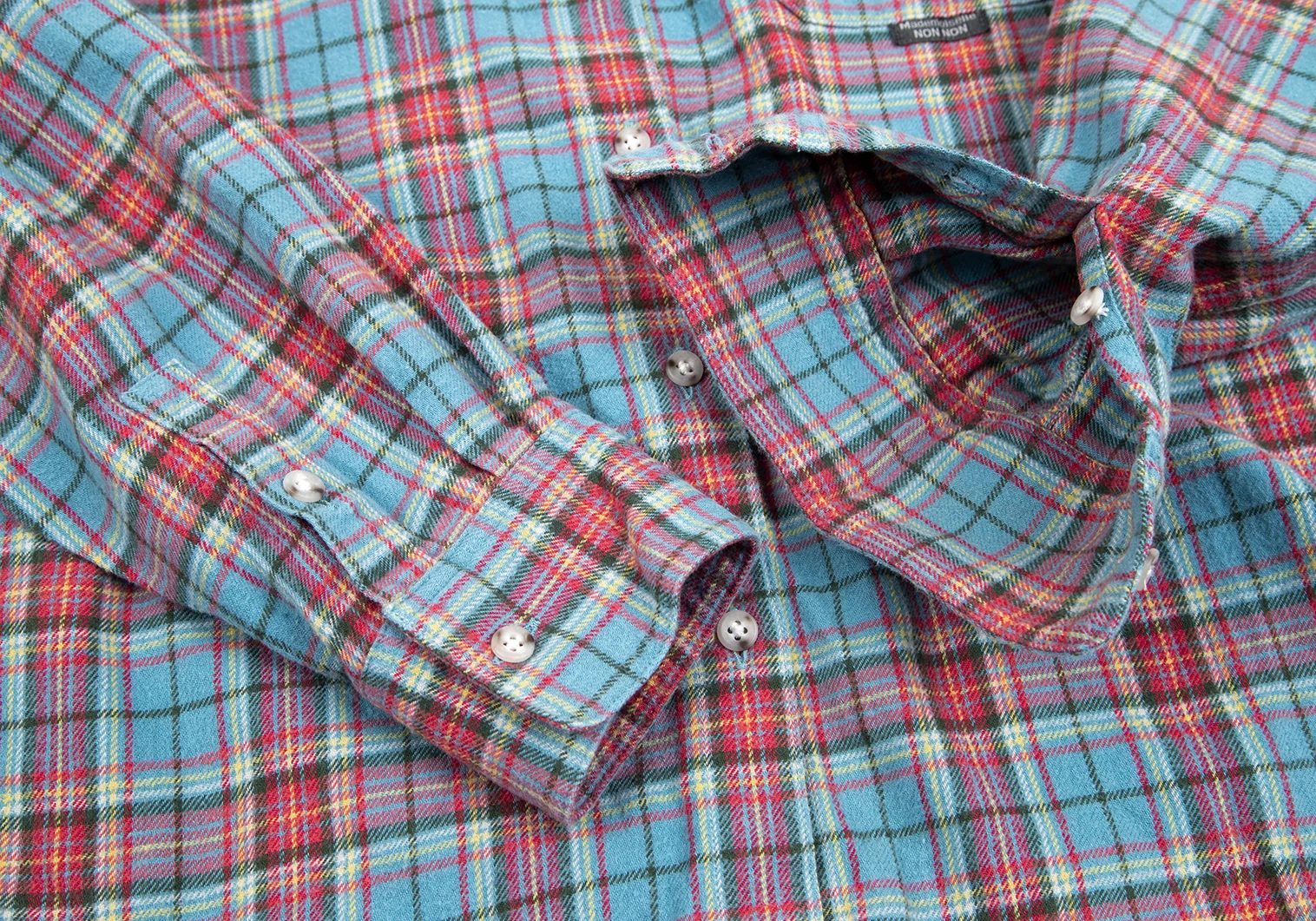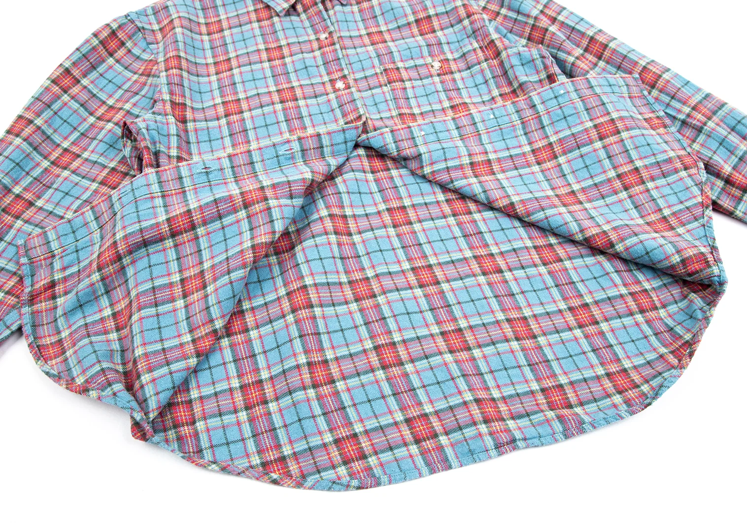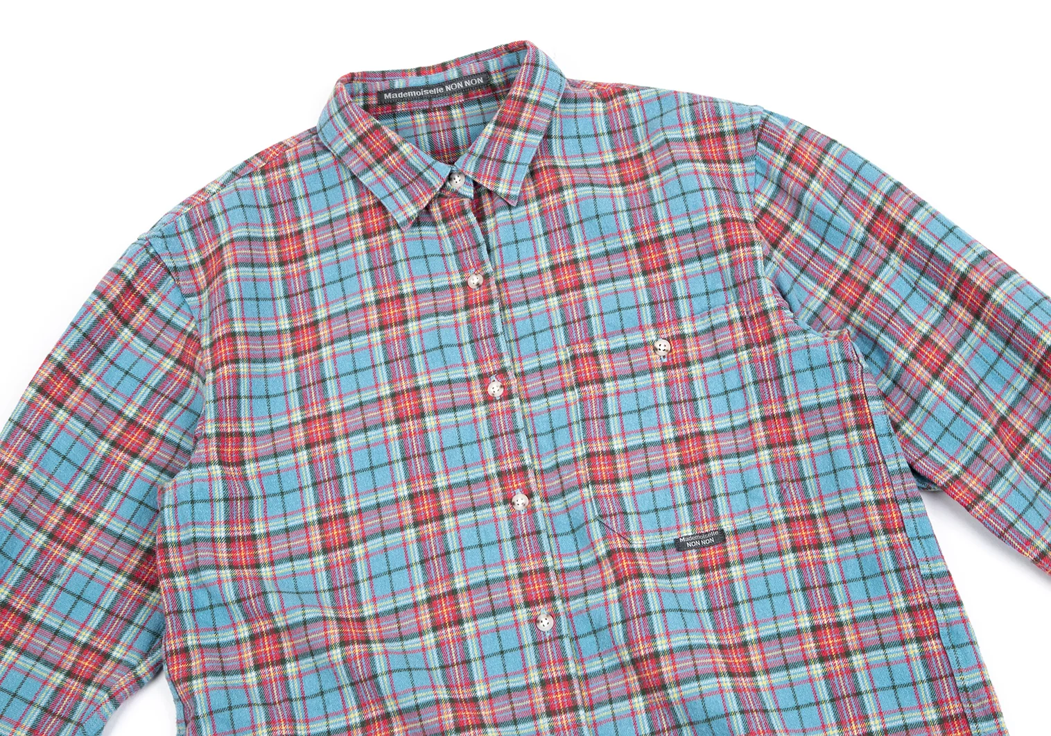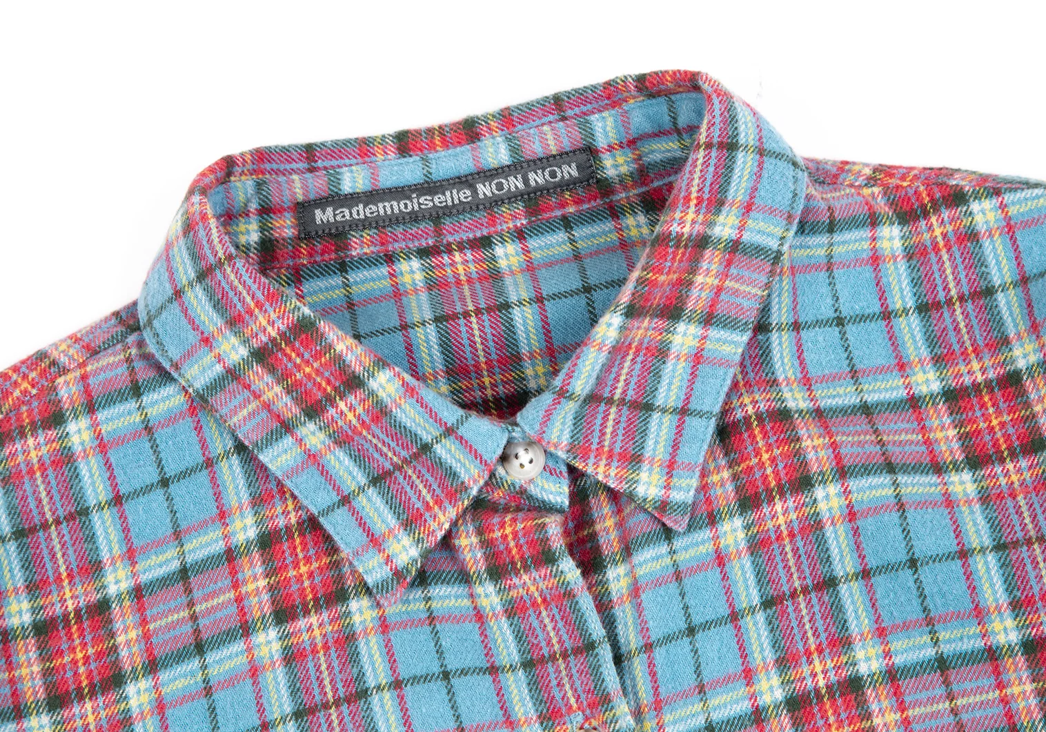 マドモアゼルノンノンMademoiselle NON NON コットンチェックネルシャツ 水色赤他38M
