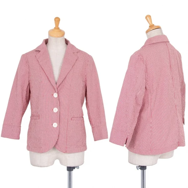 マドモアゼルノンノンMademoiselle NON NON コットンチェックシャツジャケット 赤白38M