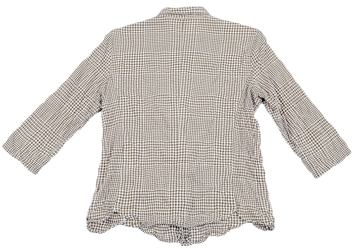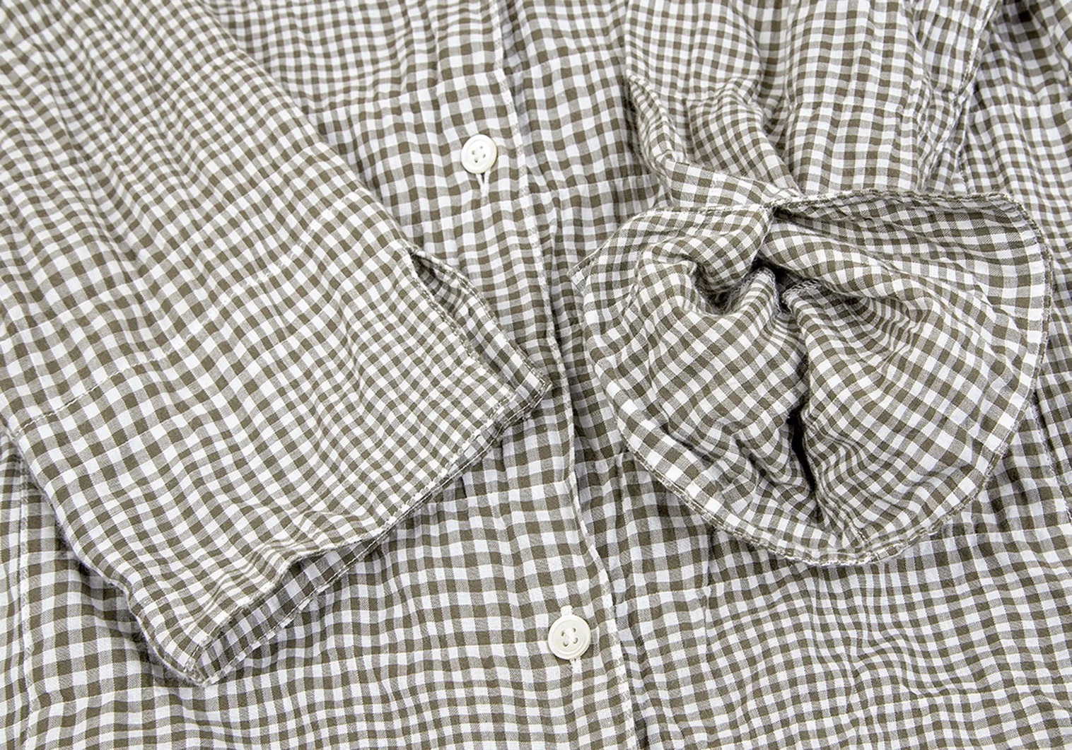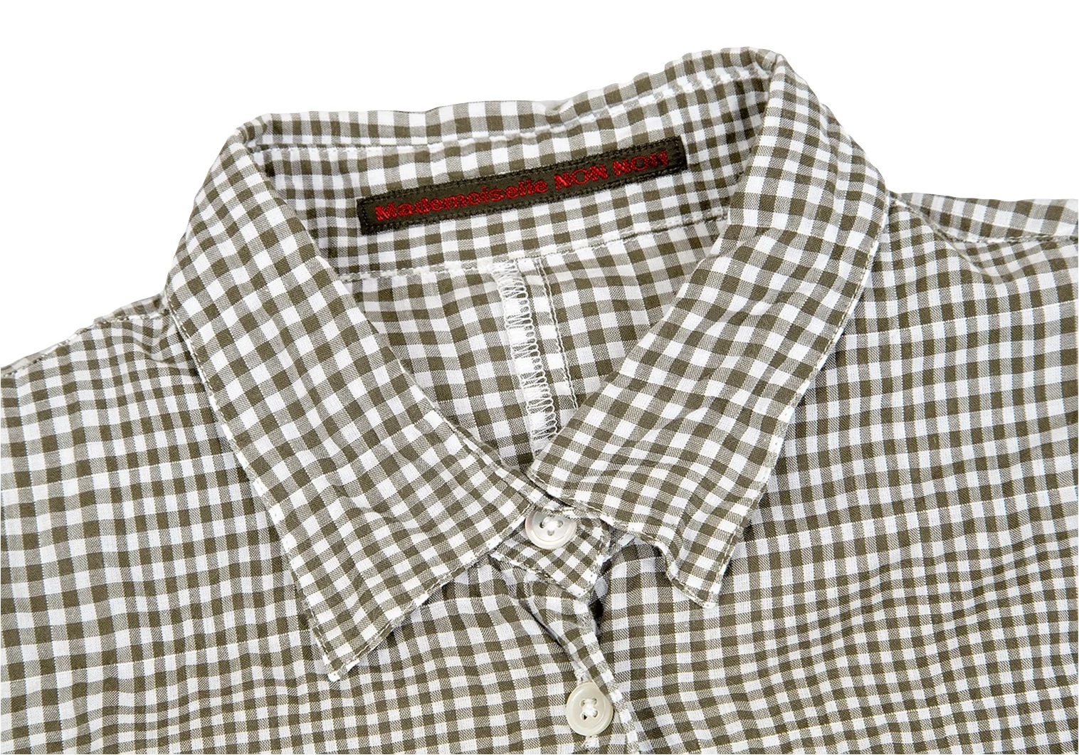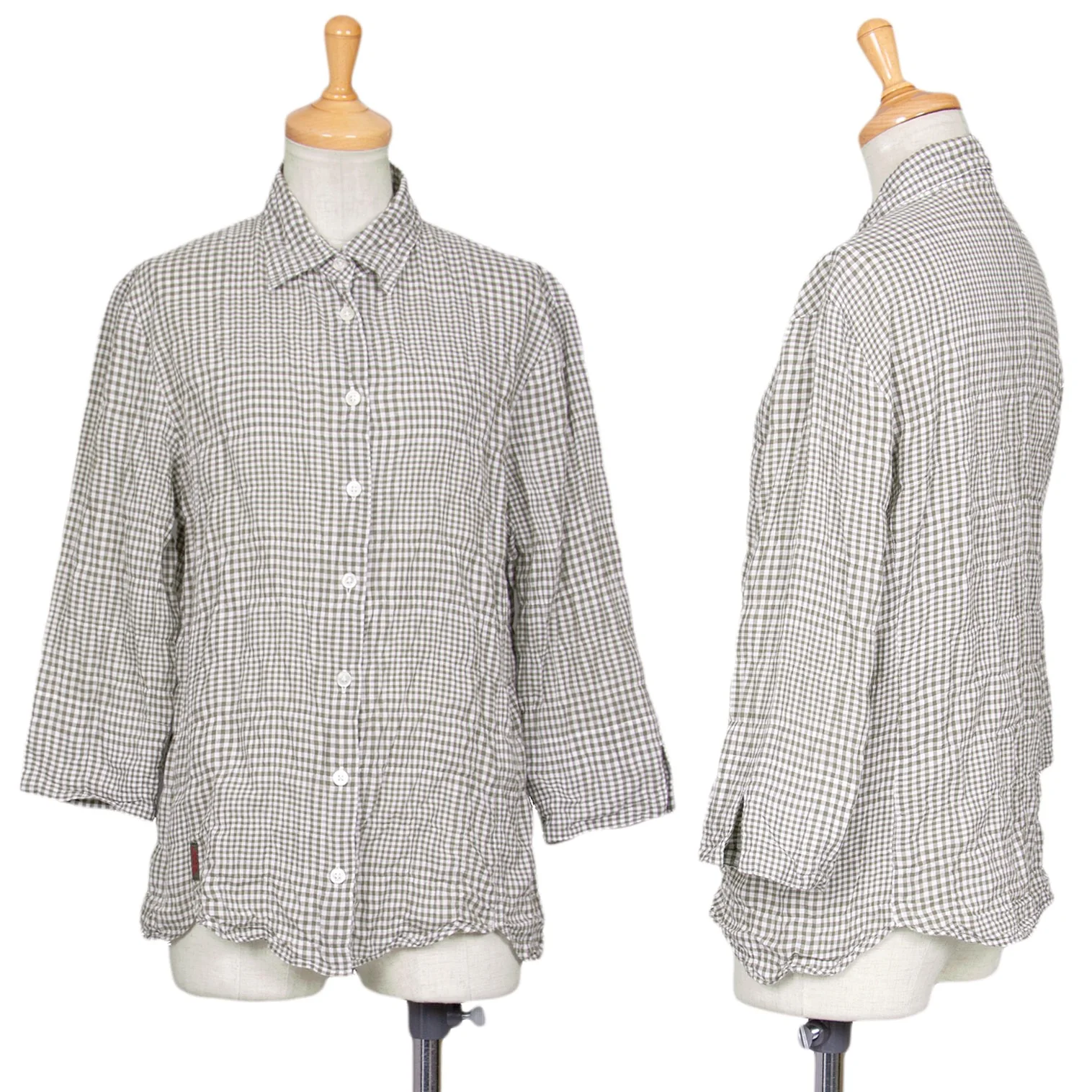 マドモアゼルノンノンMademoiselle NON NON ギンガムチェック七分袖シャツ カーキ白38M